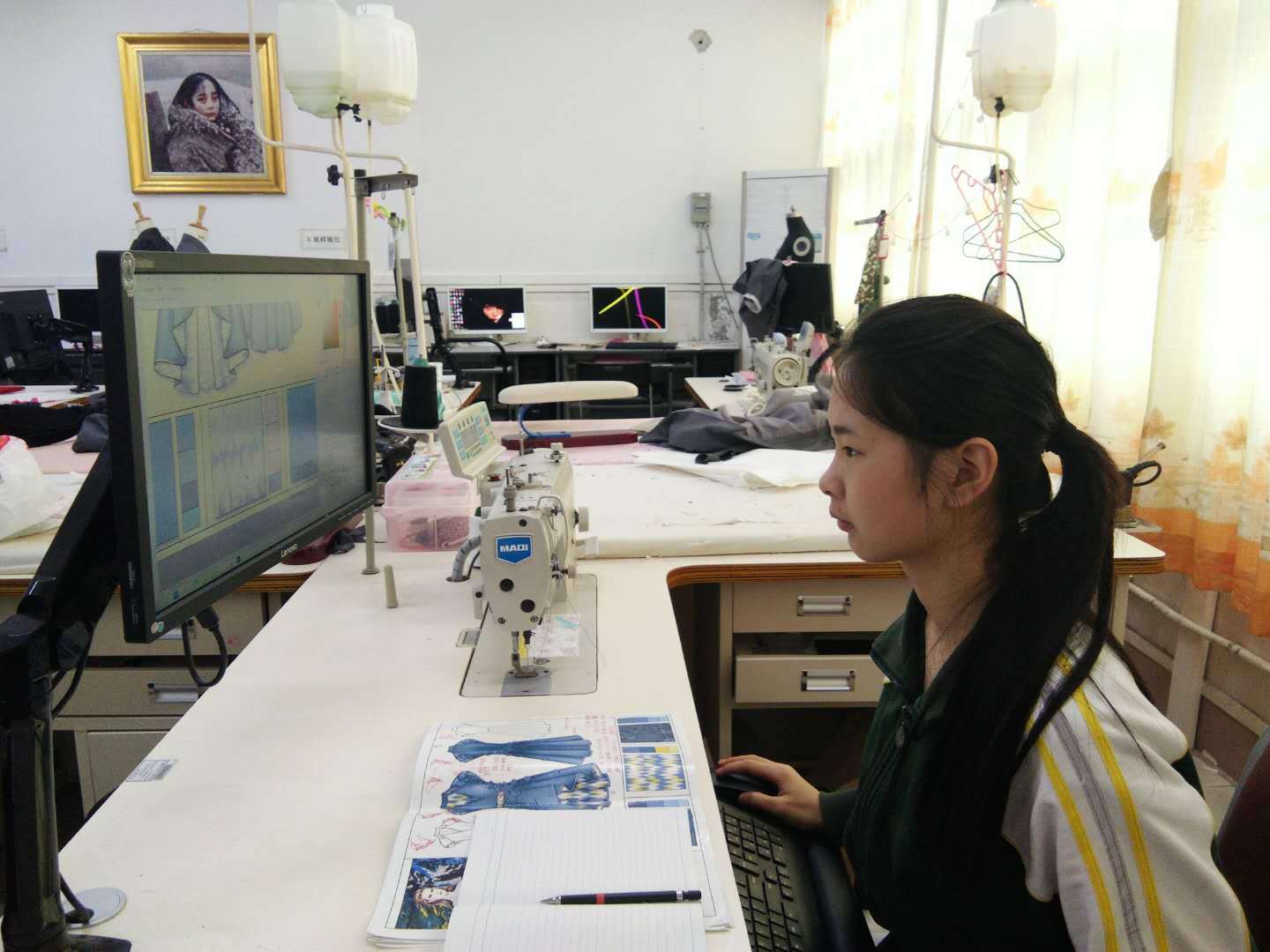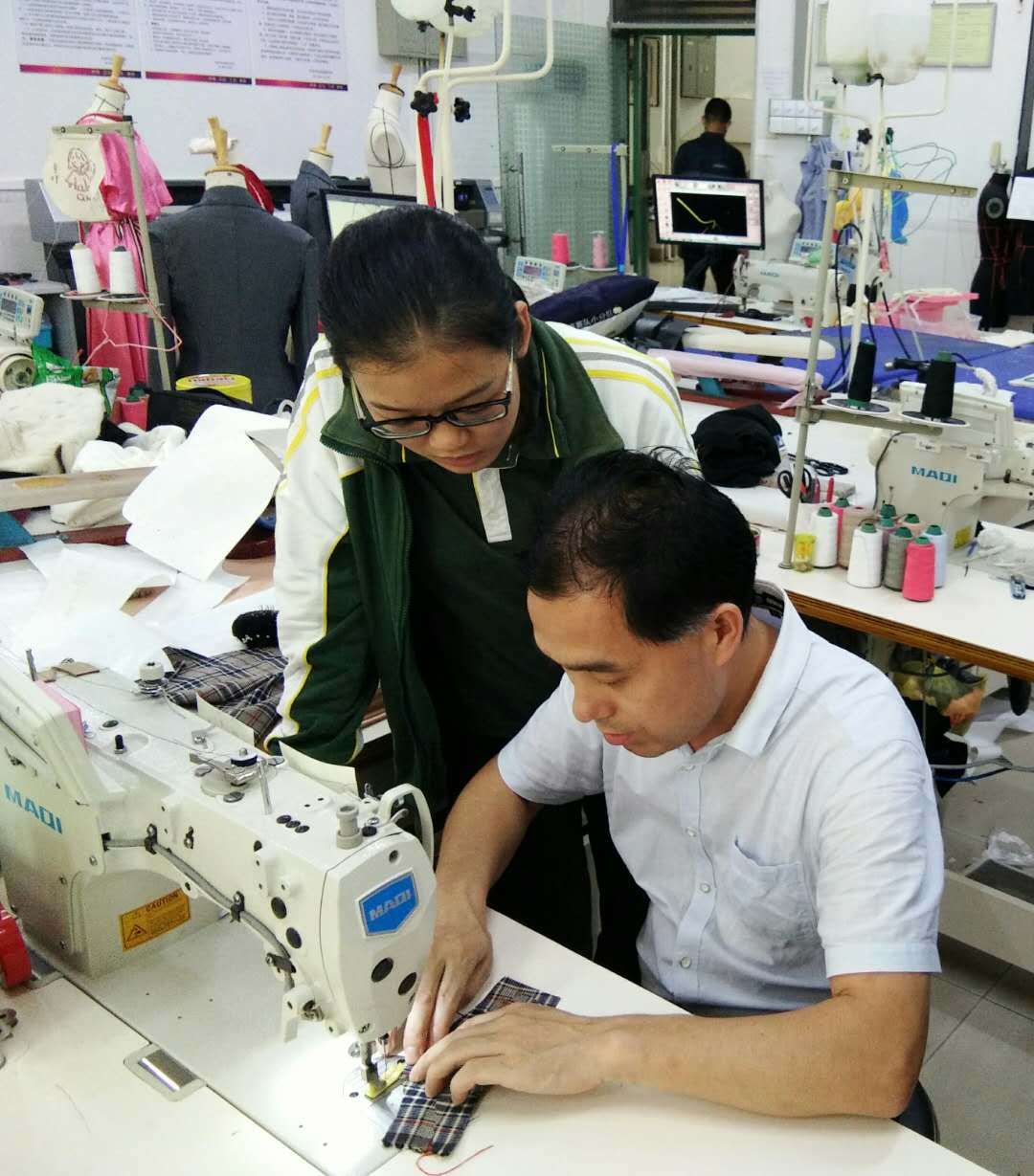 该校老师介绍,东莞市服装纺织学校致力于推行“四企三同”产教融合育人模式。通过“厂中校”“校中厂”来营造真实的企业环境,完成企业项目实战;搭建课程设计大赛、毕业设计大赛等展示平台,用市场标准评价学生作品。该校依托当地成熟的服装服饰产业,开设了4个服装类专业12个子方向,学生可在校接触服装专业全产业链条。