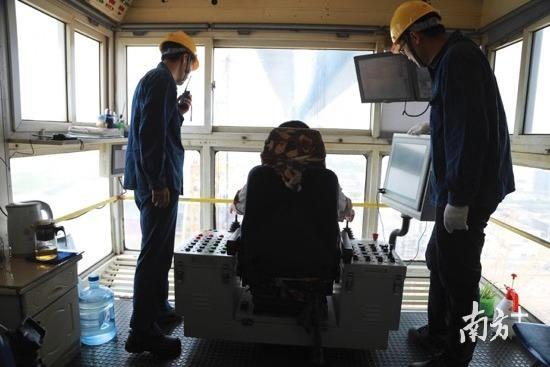 甩掉汗水,杨猛说:“还好今天没风,如果是大风天气,就有点恐怖了。”有一次杨猛正在塔吊司机室检验,突然刮起大风,塔吊来回摆动,被吓得不轻。
