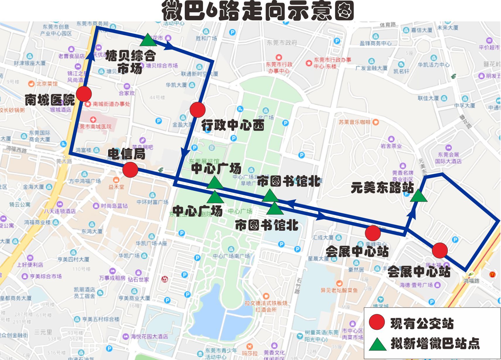 微巴6路覆盖电信局、南城医院、塘贝综合市场等地。对规划新设的站点,将待站牌设施建成后再予停靠。