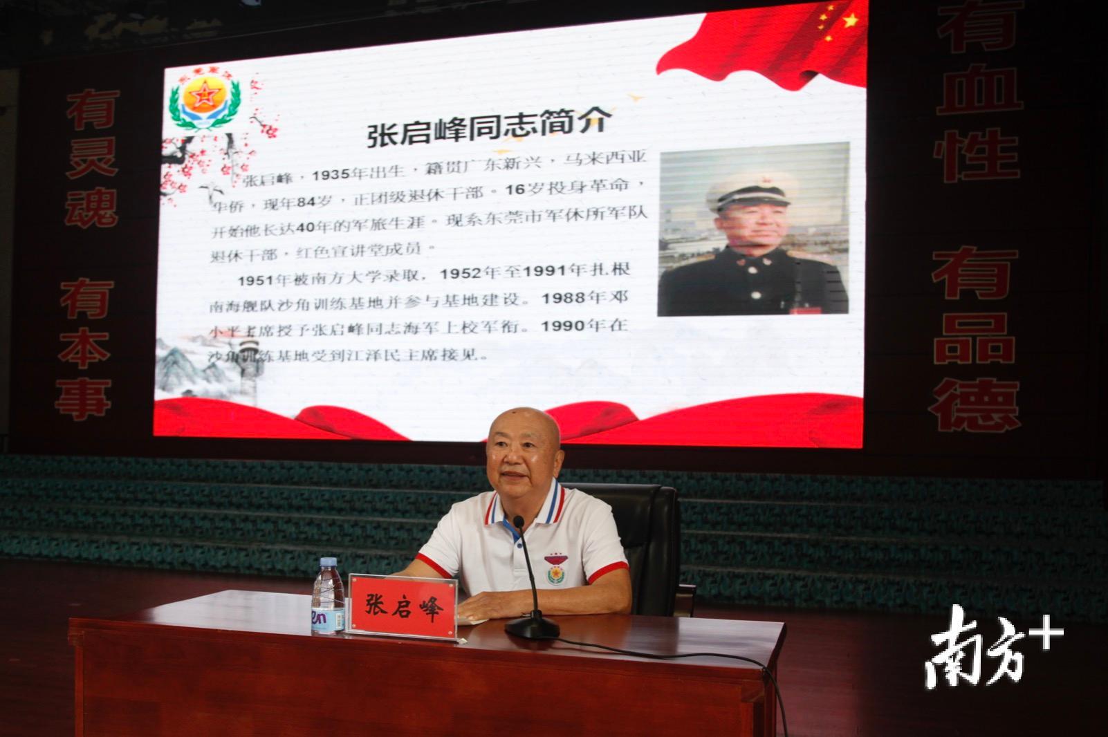 军休干部张启峰,16岁投身革命后一直扎根沙角训练基地并参与基地建设。他讲述了基地日新月异的变化,从过去的峥嵘岁月到现在的信息化发展,离不开前人的艰苦奋斗,告诫新兵们要发扬优良传统,作风要严谨,行动要规范,始终保持军人本色。