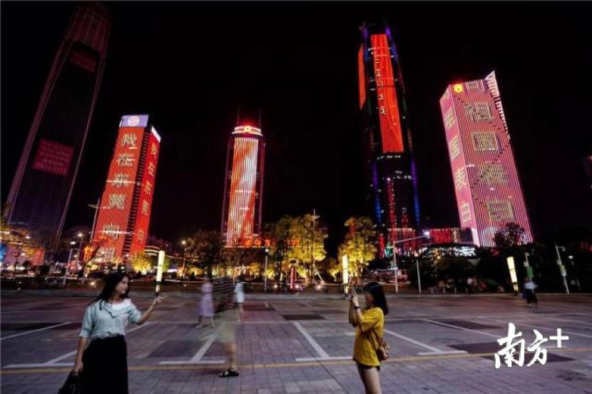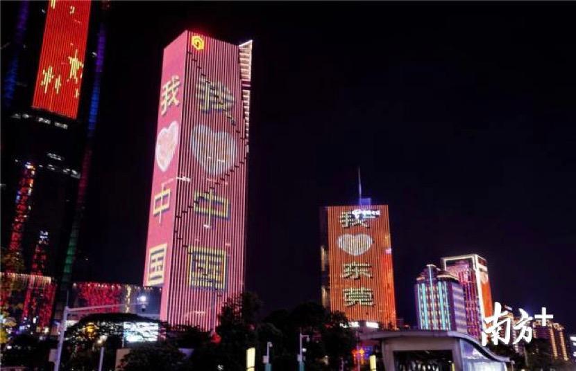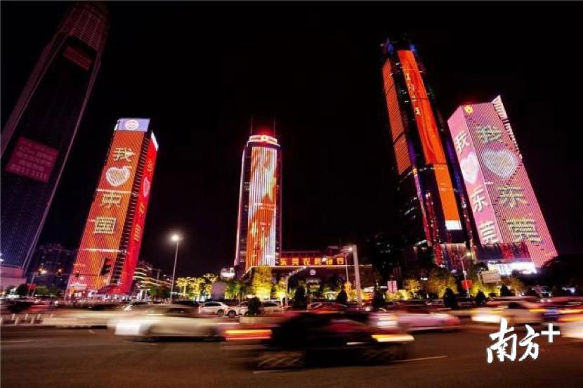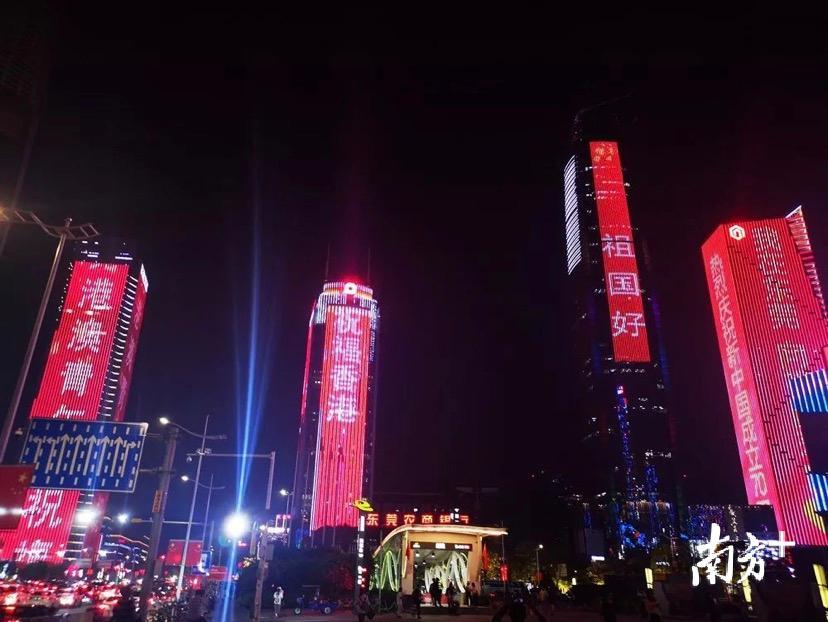 林立的高楼外墙,夜景灯绚烂夺目,一句句热爱东莞、表白祖国的标语,像弹幕一样次第刷出;巨型音乐喷泉,将水花与光影完美结合,当空喷洒出对祖国的深情告白……连日来,东莞高楼亮灯表白祖国、巨型音乐喷泉的图片和视频,在东莞人的朋友圈热传。有市民感叹:“曾经,这样的夜景,我们只能去广州深圳看,现在东莞也有如此美的夜景了,真痛快!”