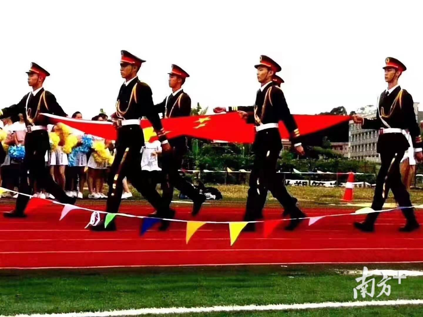 据了解,王杰亮是东莞市技师学院智能制造学院模具设计与制造专业的一名学生,也是学校15级的国旗队的队长,负责每周一学校的升旗任务。或者正是因为一年多与国旗的接触,去年初,王杰亮跟母亲提出要应征入伍,理想就是进入中国人民解放军陆海空三军仪仗队。