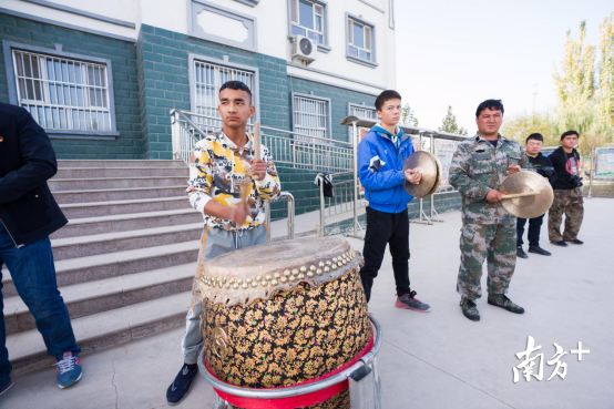 在东莞援疆工作队的推动下,2018年4月,东风农场成立了南疆第一支农民(职工)醒狮队。去年4月,在东莞援疆工作队的邀请下,胡华盖来到喀什,教授当地的学员舞狮。