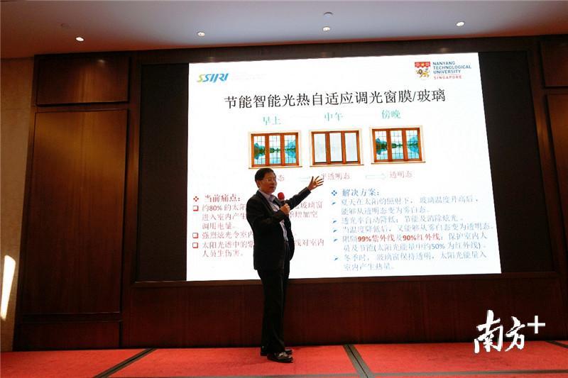 路演现场,新加坡南洋理工大学的12个专家团队分别展示了最新的科技成果。新加坡南洋理工大学陈土培教授展示了节能智能光热自适应调光膜/玻璃产品,其自适应调光功能颇具特色,能够根据环境光照和温度进行透光率自动调整,无需电路控制。