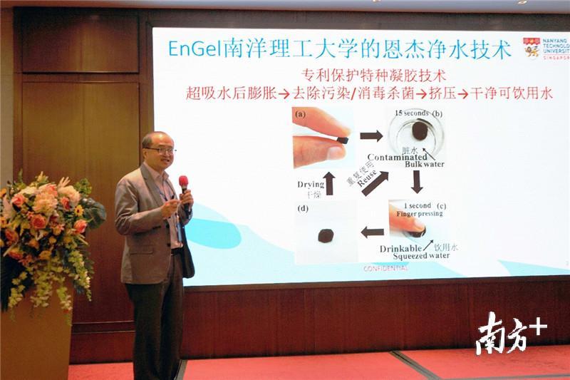 “仅需4g特殊凝胶,就可以杀灭细菌99.9999%,在5分钟内将江河湖水净化至饮用级别。”这款由新加坡南洋理工大学胡晓教授开发的凝胶即时引用水技术引起了现场众多关注,据介绍,该技术无需电力,能够在高效杀除致病细菌的同时,去除重金属,降低浊度,保证饮用者饮水安全,可广泛应用于应急救援、野外探险等。