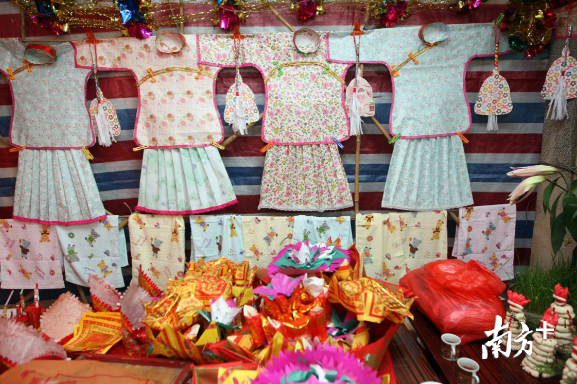 在这小小方寸之间,“七仙女过花桥”“七姐游园花”“牛郎织女、男耕女织”等场景都活灵活现了浓厚的水乡和七夕文化底蕴,而一些时尚的元素,如动漫公仔、洋娃娃近年也陆续登上贡案,增添了不少现代生活气息,让孩子们为之着迷。