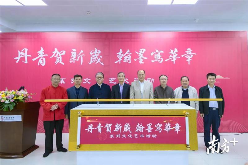 开幕仪式上,东莞市原市长黎桂康,市委常委、市委宣传部部长杨晓棠,生态中国书画院院长杨炳延,中国书画报报社社长何东,大岭山镇委书记张拔海等共同为本次文化艺术活动进行启动,随着缓缓打开的卷轴,此次展览也正式拉开帷幕。