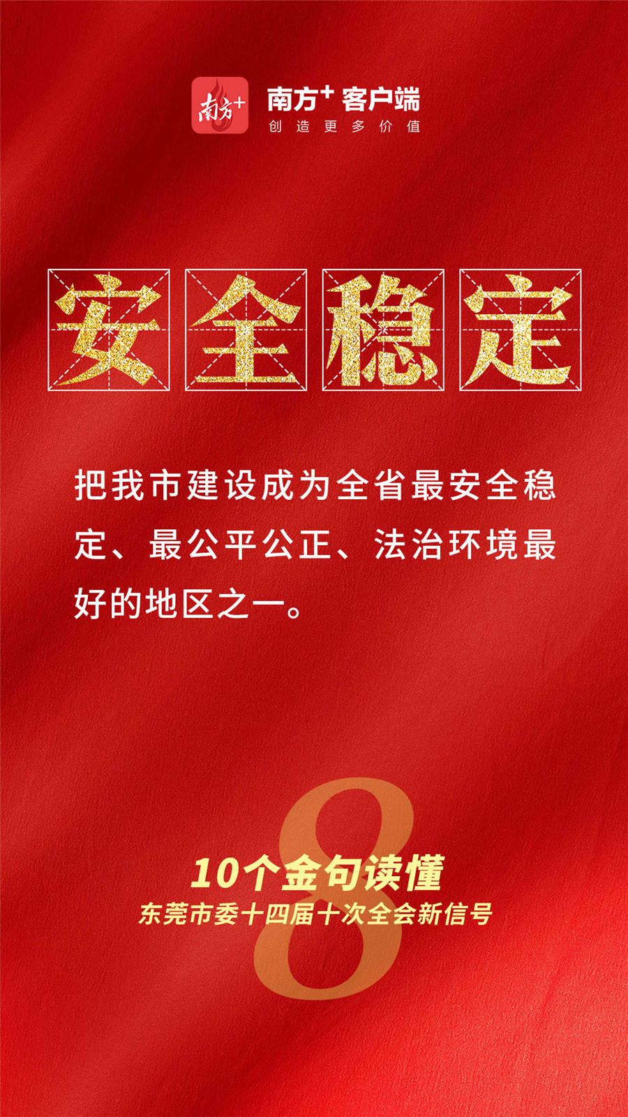 解读:建设人人有责、人人尽责、人人享有的社会治理共同体,把东莞建设成为全省最安全稳定、最公平公正、法治环境最好的地区之一。大力提升党组织领导基层社会治理的能力。提高社会治理社会化、法治化、智能化、专业化水平。要以产业振兴为突破口,推动东莞乡村振兴取得更大实效。