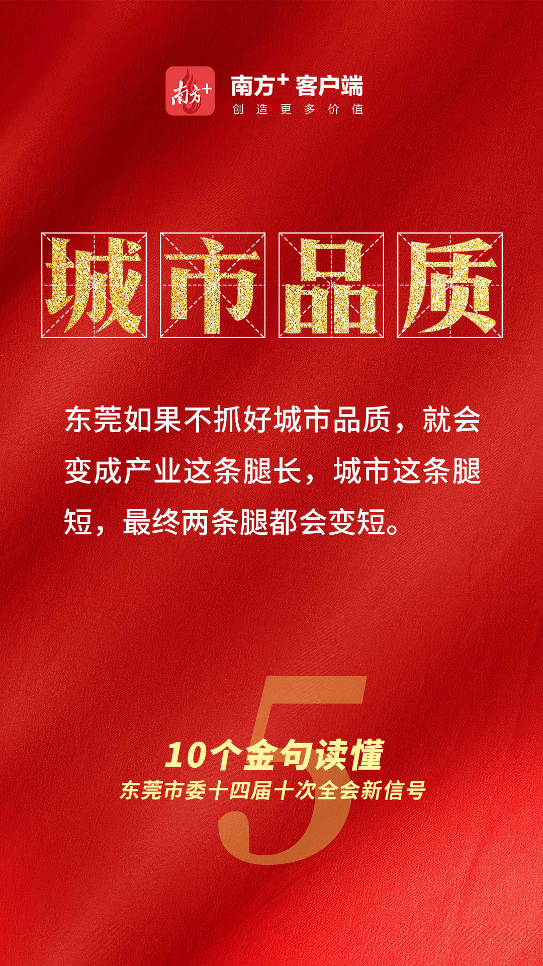东莞如果不抓好城市品质,就会变成产业这条腿长、城市这条腿短,最终两条腿都会变短。