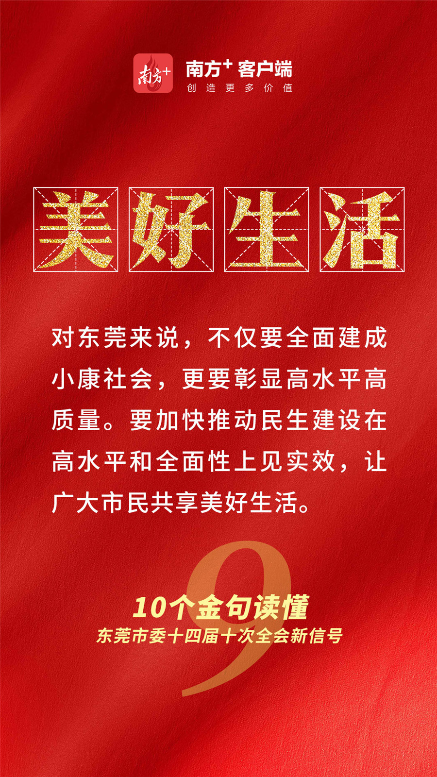 对东莞来说,不仅要全面建成小康社会,更要彰显高水平高质量。要加快推动民生建设在高水平和全面性上见实效,让广大市民共享美好生活。