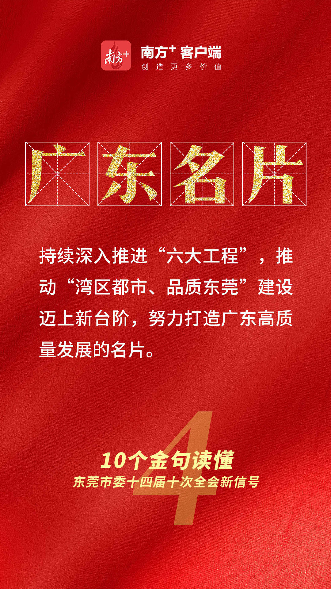 持续深入推进“六大工程”,推动“湾区都市、品质东莞”建设迈上新台阶,努力打造广东高质量发展的名片。