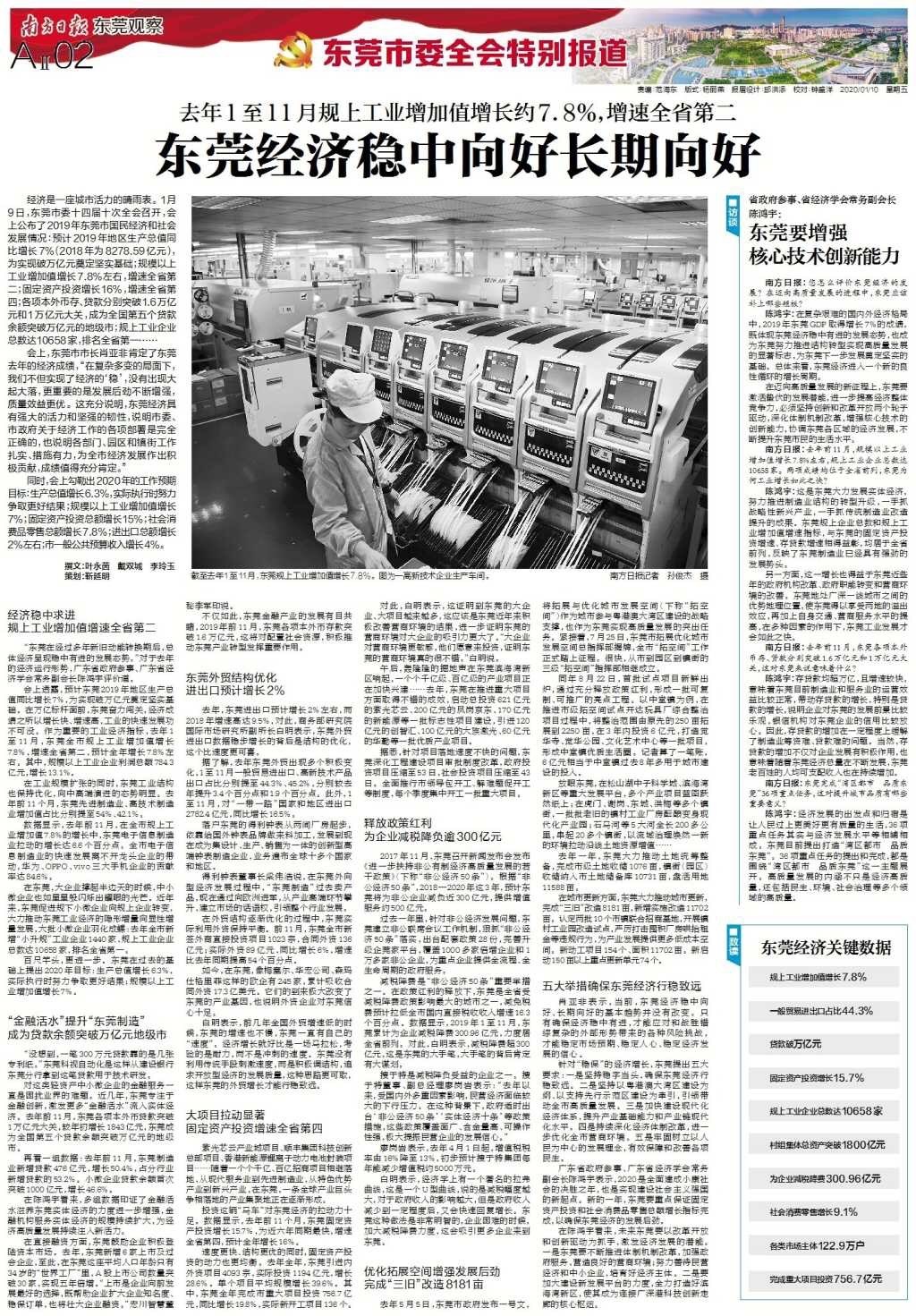 南方日报:去年前11月,规模以上工业增加值增长7.8%左右,规上工业企业总数达10658家。两项成绩均位于全省前列,东莞为何工业增长如此之快?