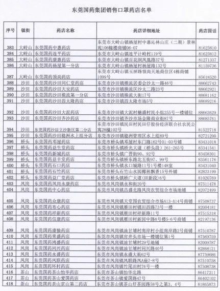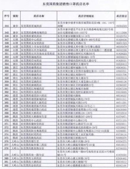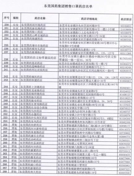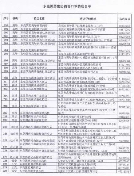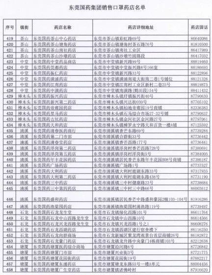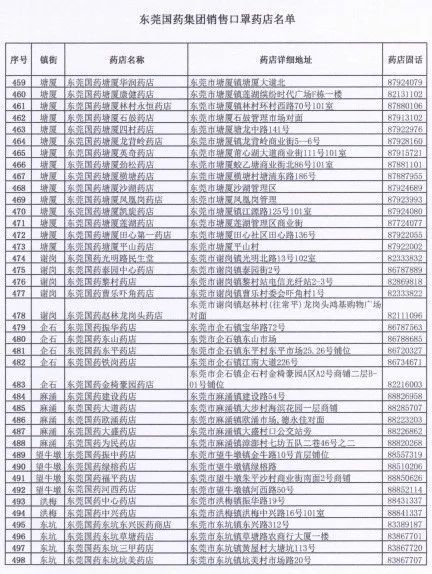 东莞国药500个门店地址电话