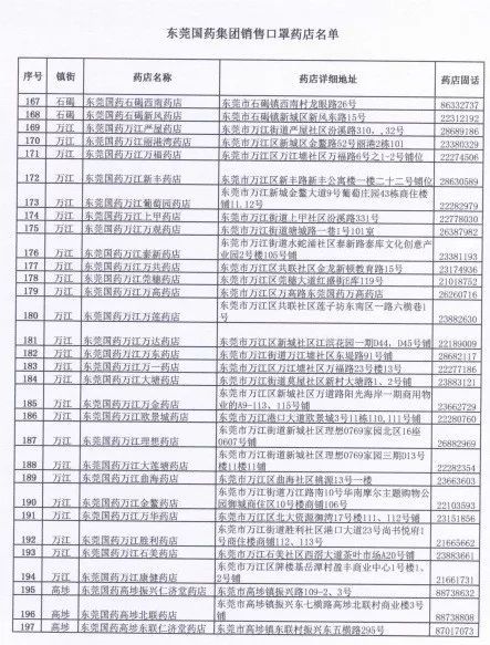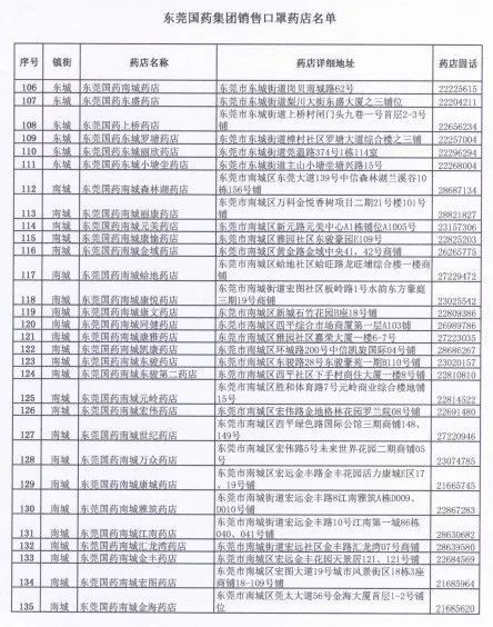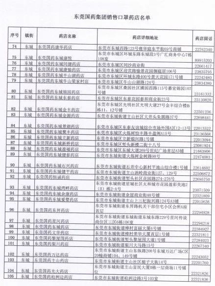 2月12日当日,仍将通过东莞国药旗下500家药店,自9:30向社会投放10万个一次性口罩。市民可凭本人有效身份证,以排队取号方式到门店有序购买(每人每日限购5个,定价1元/个)。请购买口罩的市民先行查询就近门店,做好健康防护、分流购买,并可实时拨打门店电话了解库存情况。