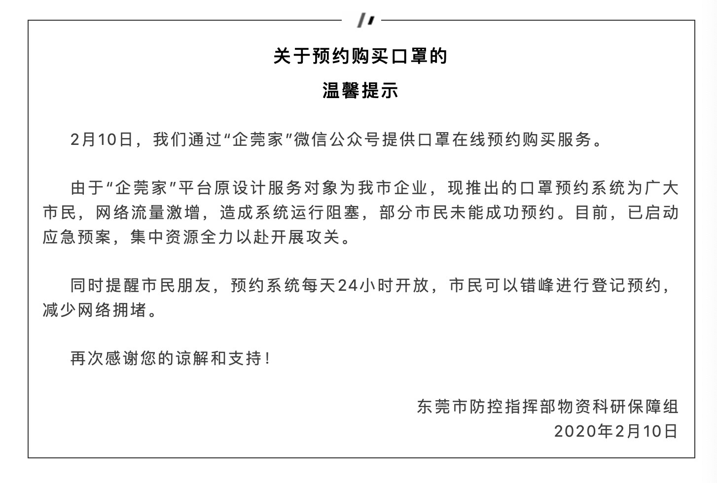 东莞市新型冠状病毒肺炎疫情防控指挥部办公室发布关于东莞口罩预约购买系统热点问题的解答