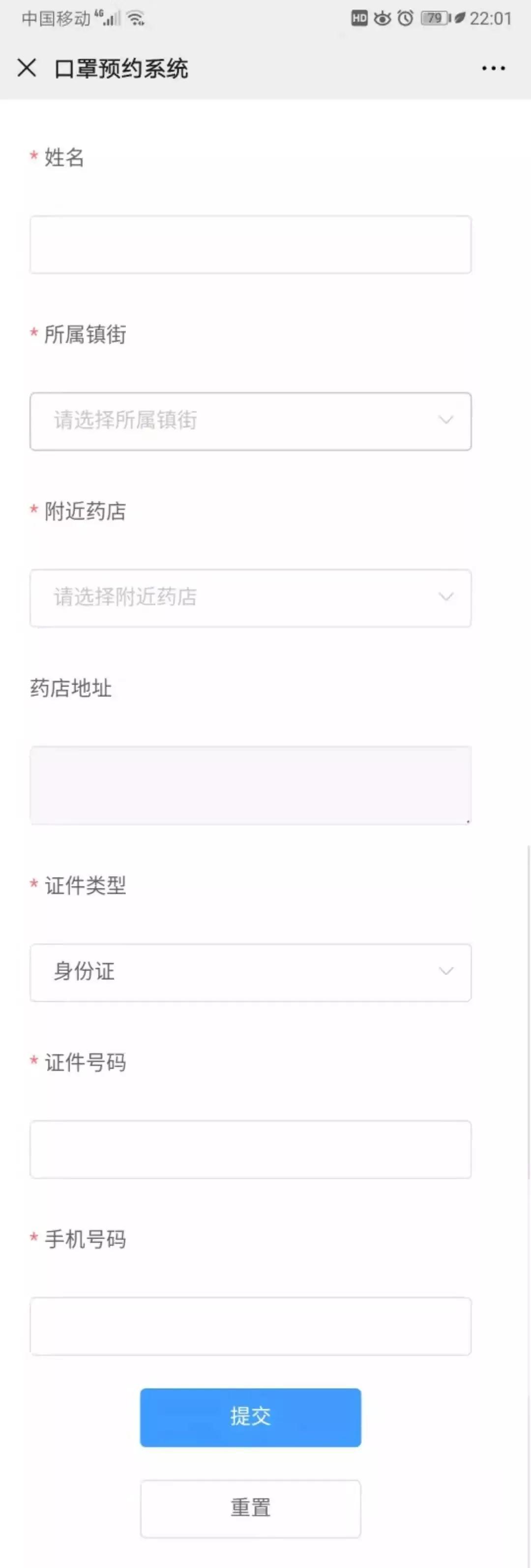 2.点击“口罩预约”栏目进入登记页面,如实填写姓名、身份证号码和手机号码等信息,并选择就近的东莞国药门店;