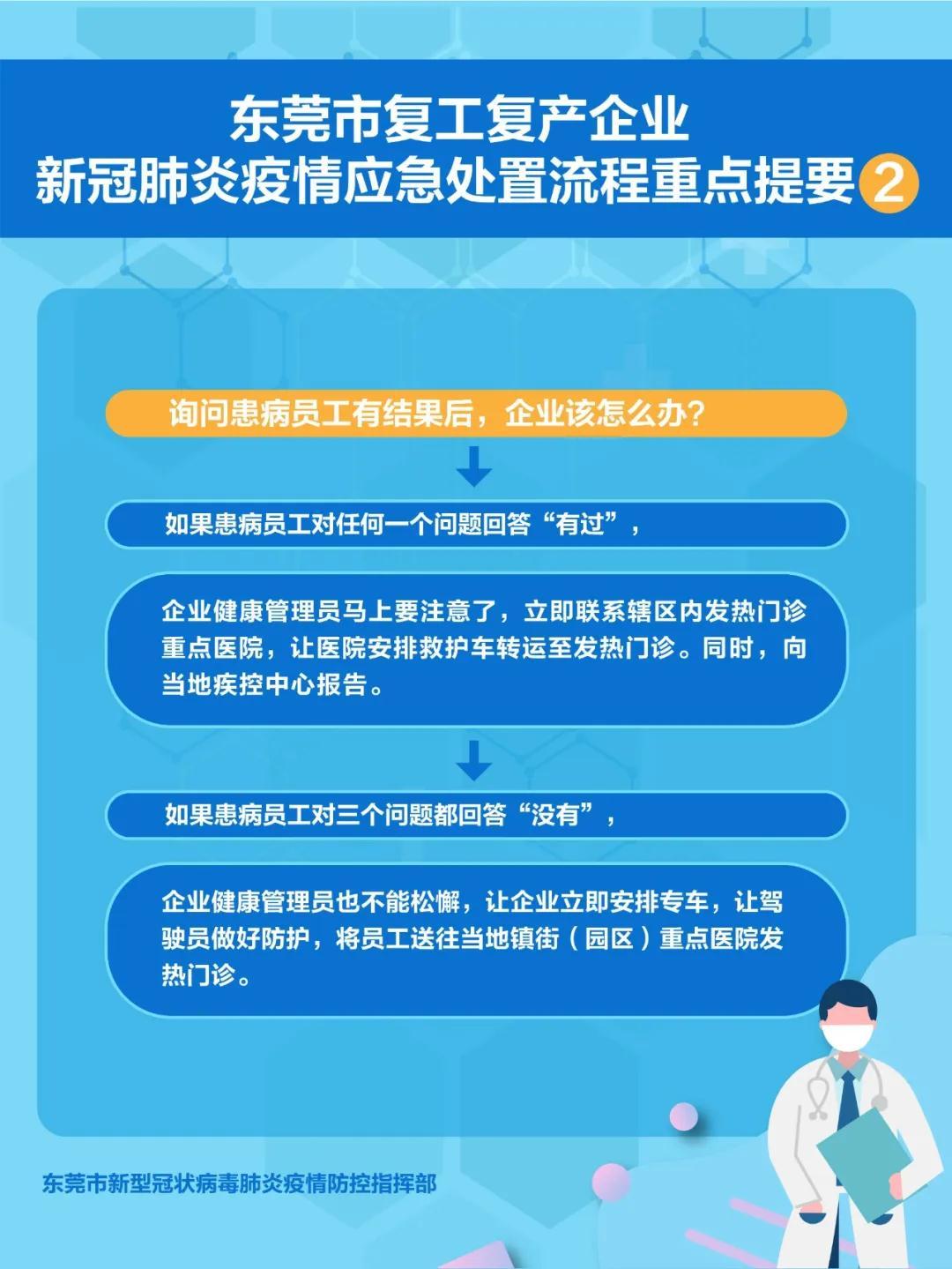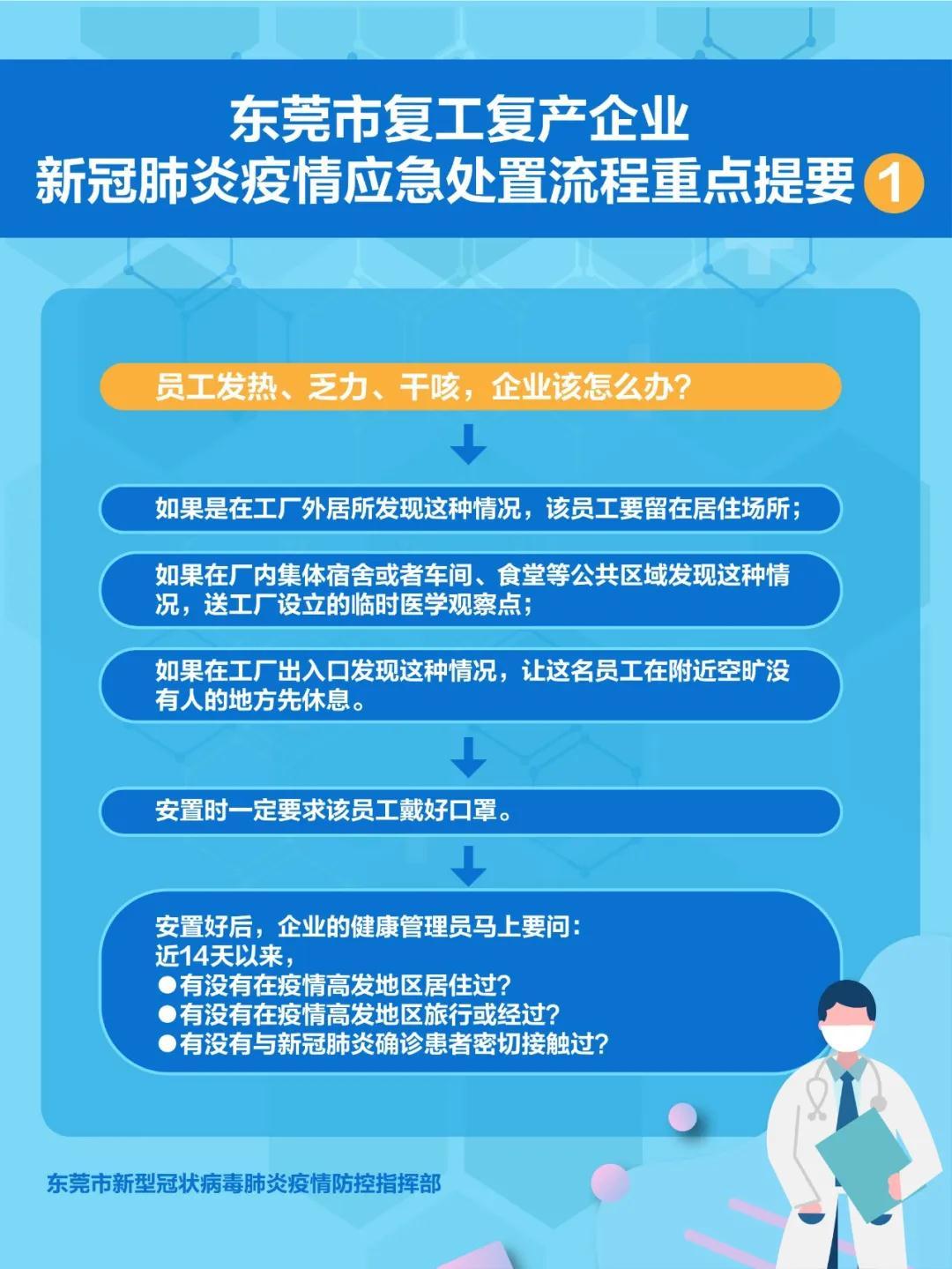 3月1日,东莞市新冠肺炎防控指挥办发布东莞市复工复产企业新冠肺炎疫情应急处置流程图(海报版),请各企业单位下载!