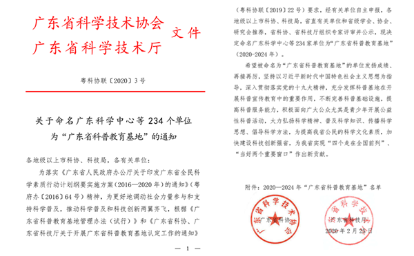 近日,广东省科学技术厅、广东省科学技术协会发布了《关于命名广东科学中心等234个单位为“广东省科普教育基地”的通知》。根据通知,东莞新增11个广东省科普教育基地。