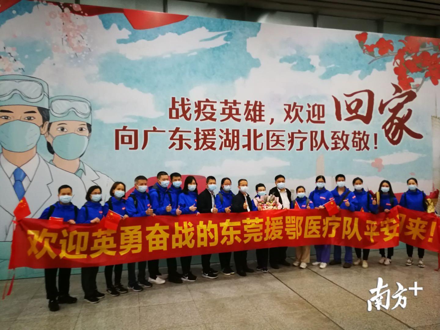 今天的东莞,白衣战士归来的消息在市民朋友圈刷屏,欢迎他们的标语,遍布东莞商圈地标。