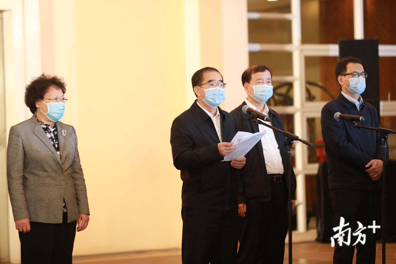 出征前,东莞统一举行高规格的仪式为医疗队送行,勉励他们一定要以必胜的信心打赢这场硬仗,市委、市政府和全市人民都是他们坚强的后盾。带着东莞的责任,带着东莞的爱,带着医务人员救死扶伤、甘于奉献、大爱无疆的精神到一线去直接参与抗击疫情工作。当时,梁维东表示,此行任务艰巨,但看到大家展现出来的必胜决心和良好风貌,相信医疗队一定能够不负重托,出色完成任务。