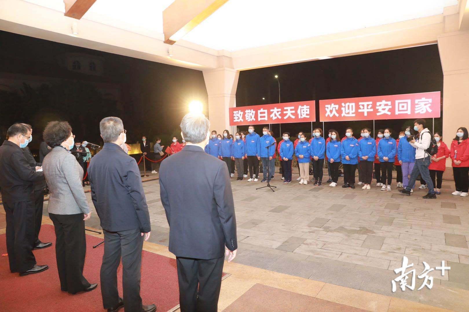 在宾馆等候的,是包括市委书记、市长在内的“最强亲友团”。东莞市委书记梁维东在欢迎仪式上说,你们用实际行动证明了,你们是东莞全市人民的骄傲,是最美天使,是新时代最可爱的人,是全市上下学习的榜样。