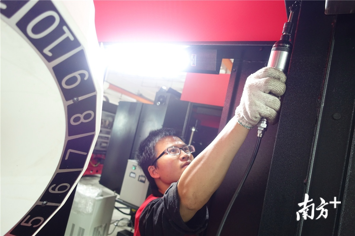 在广东思沃精密机械有限公司的生产车间,技术人员正在装配全自动贴膜机。这是思沃公司自主研发的首台设备,可获得市镇逾400万元奖励。“我们计划把这笔资金用于研发。”思沃公司总经理王建勋表示。