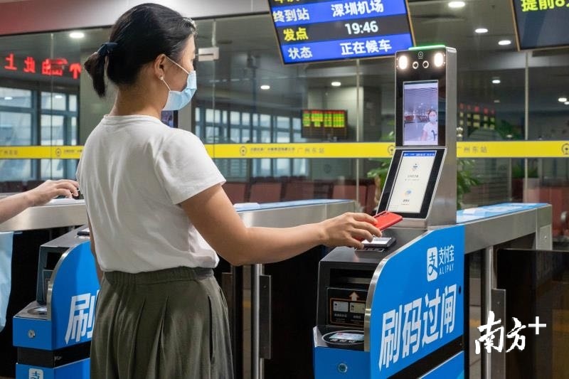 据介绍,此次扫码乘车的开通,使城际列车公交化步伐加快。乘客只需要打开支付宝首页,搜索“广铁城际通”,按照提示刷脸完成身份认证,开通相关功能,出行当天就能直接使用支付宝刷码进站,无需提前买票,也不怕忘带身份证,坐火车就像坐地铁一样方便。