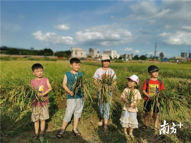 “我在东莞将近20年没见过水稻了,今天特地带孩子来开开眼界。”时隔近20年,刘女士再次站在稻田里感受丰收的喜悦。看到大家在稻田里玩得高兴,刘女士4岁的女儿一个劲朝着田里喊:“我也要玩,我也要玩!”