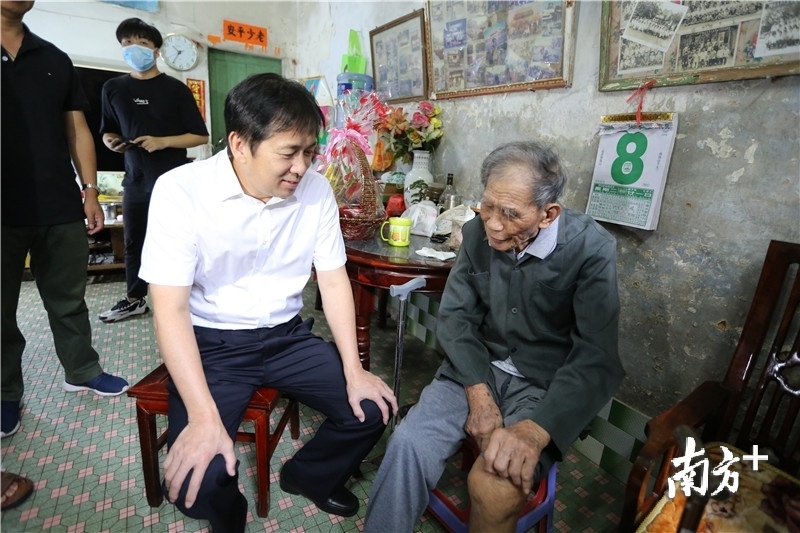 在南城阳光第五小学退休教师李刚明家里,苏东亲切地问候李刚明的身体状况,了解他的从教经历。看到墙面上已泛黄的师生合照,苏东要相关人员将照片塑封,保存好这份珍贵的回忆。随后,苏东为李刚明送上慰问金和慰问品。