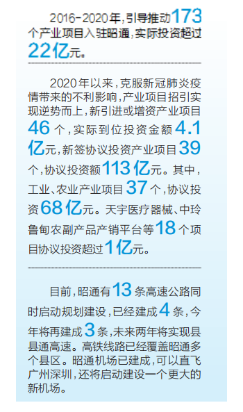 而今,越来越多这样“零”的突破在昭通接续上演。2016—2020年,东莞引导推动173个产业项目入驻昭通,实际投资超过22亿元。