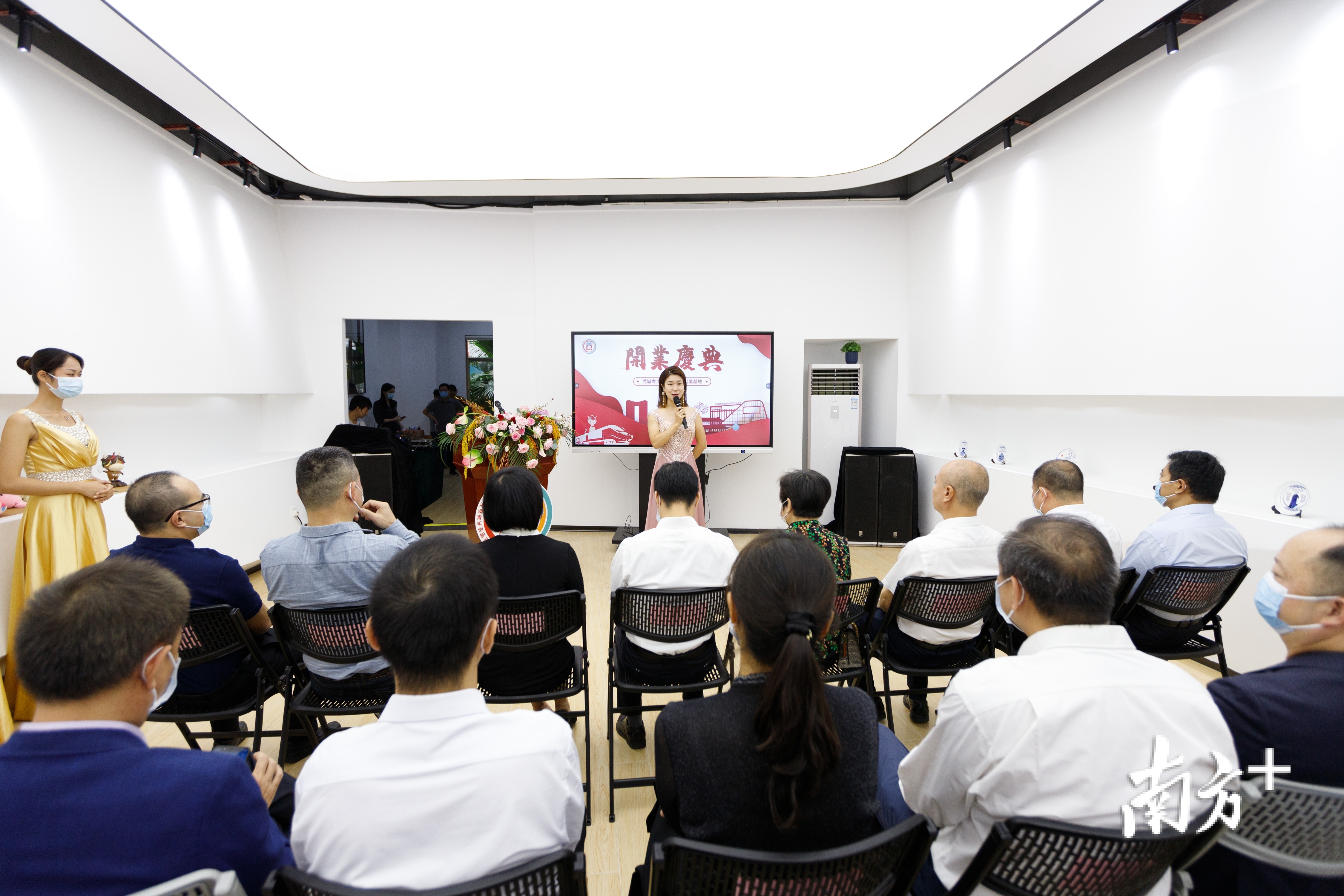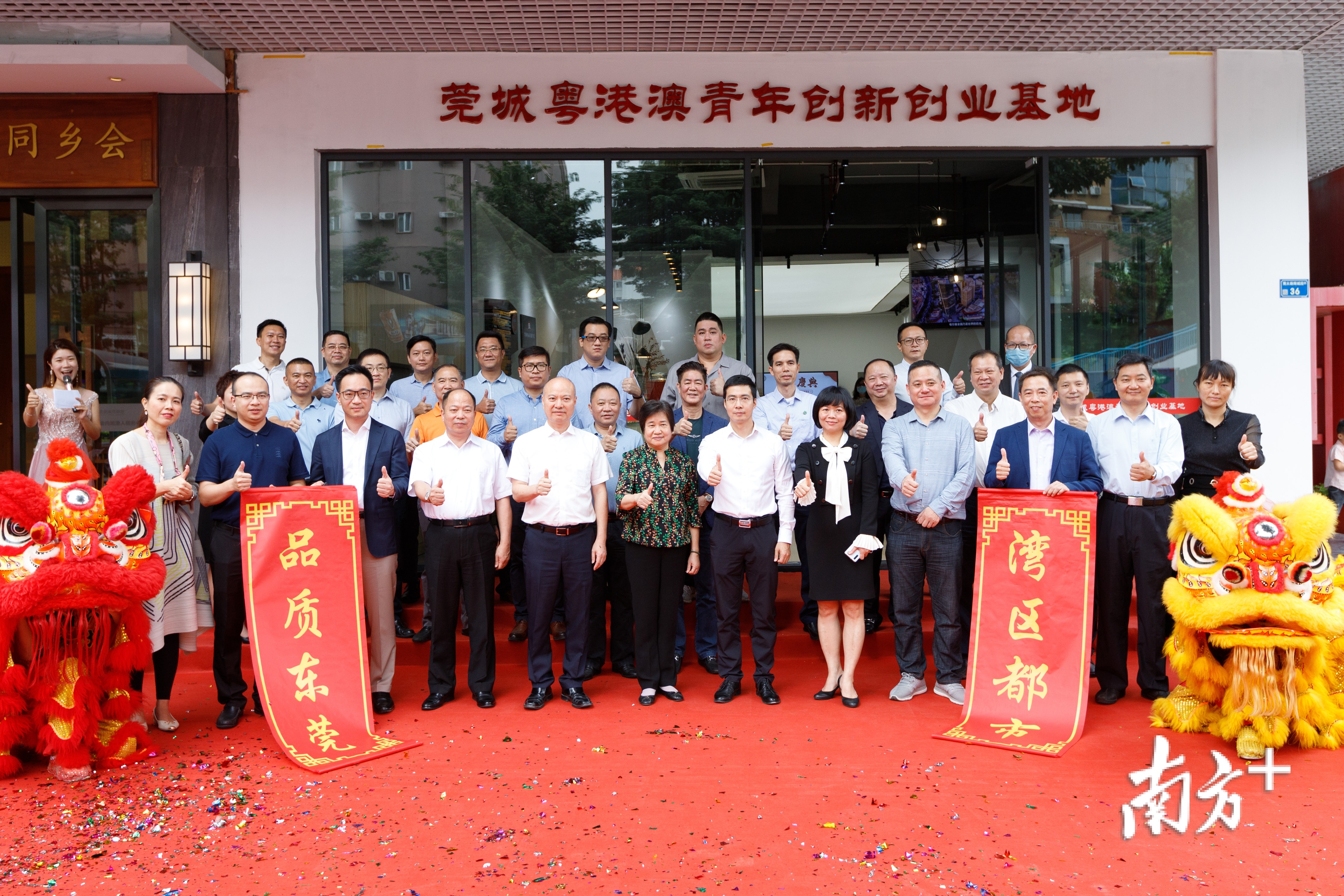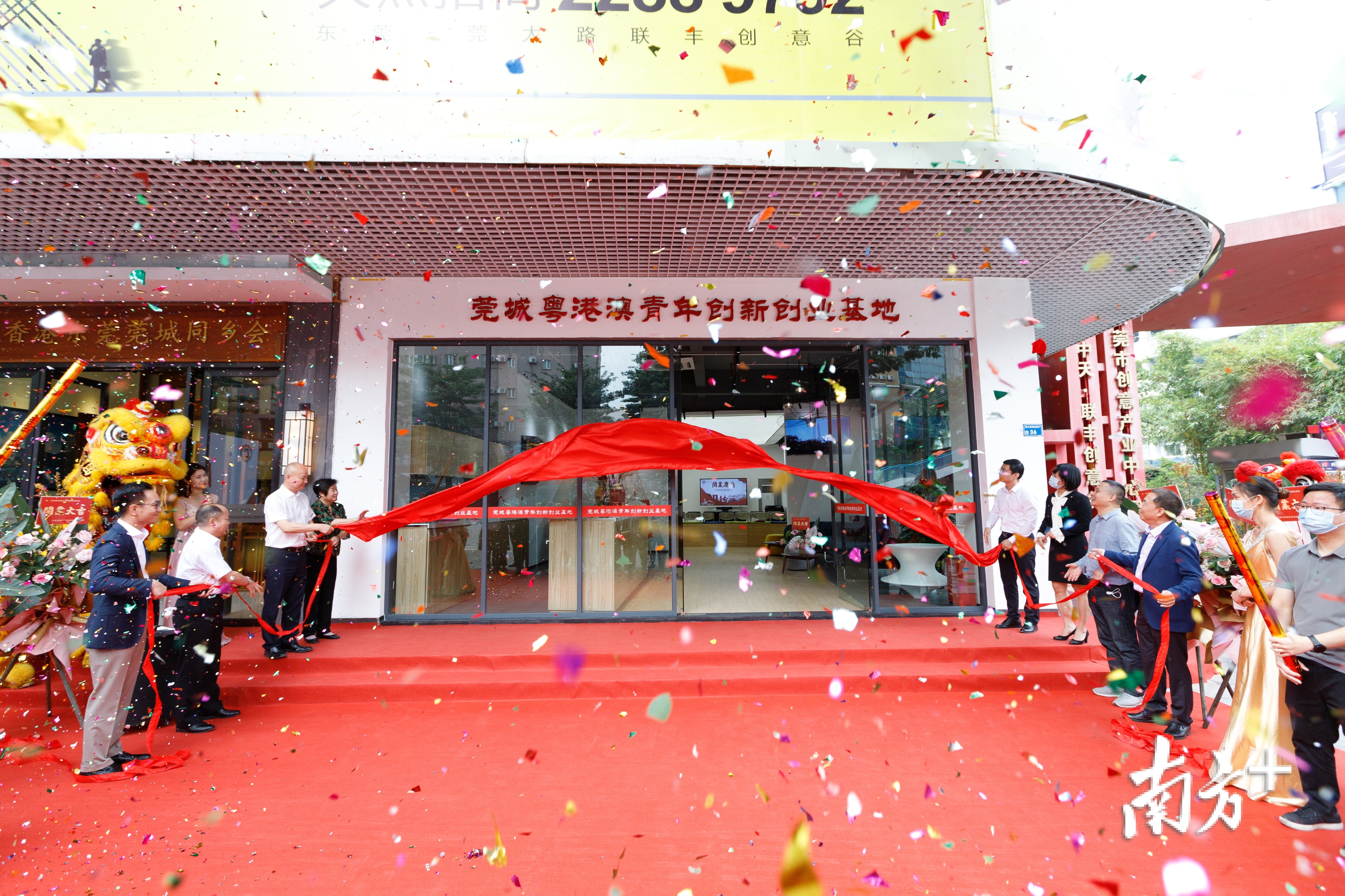 东莞市委统战部副部长、市侨务局局长丁群好,市人社局副局长汤丽华,市商务局调研员夏满昌,市台港澳事务局调研员蒋小华,莞城街道党委书记陈钊,党委副书记、办事处主任麦允谦,街道领导陈玉东、叶俊杰、李翼鸿、萧健峰、李达群出席揭牌仪式。