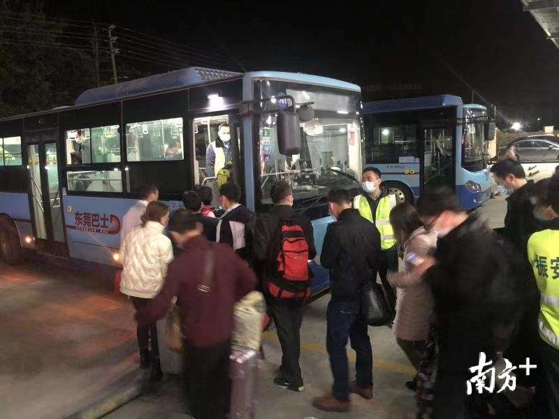 深夜返莞的旅客,公交车将把您送回家。记者从东莞巴士了解到,为迎接外来务工人员返莞,蓝巴士在东莞东火车站、东莞火车站、虎门高铁站临时增开了夜班车,已经为千余名旅客提供了服务。