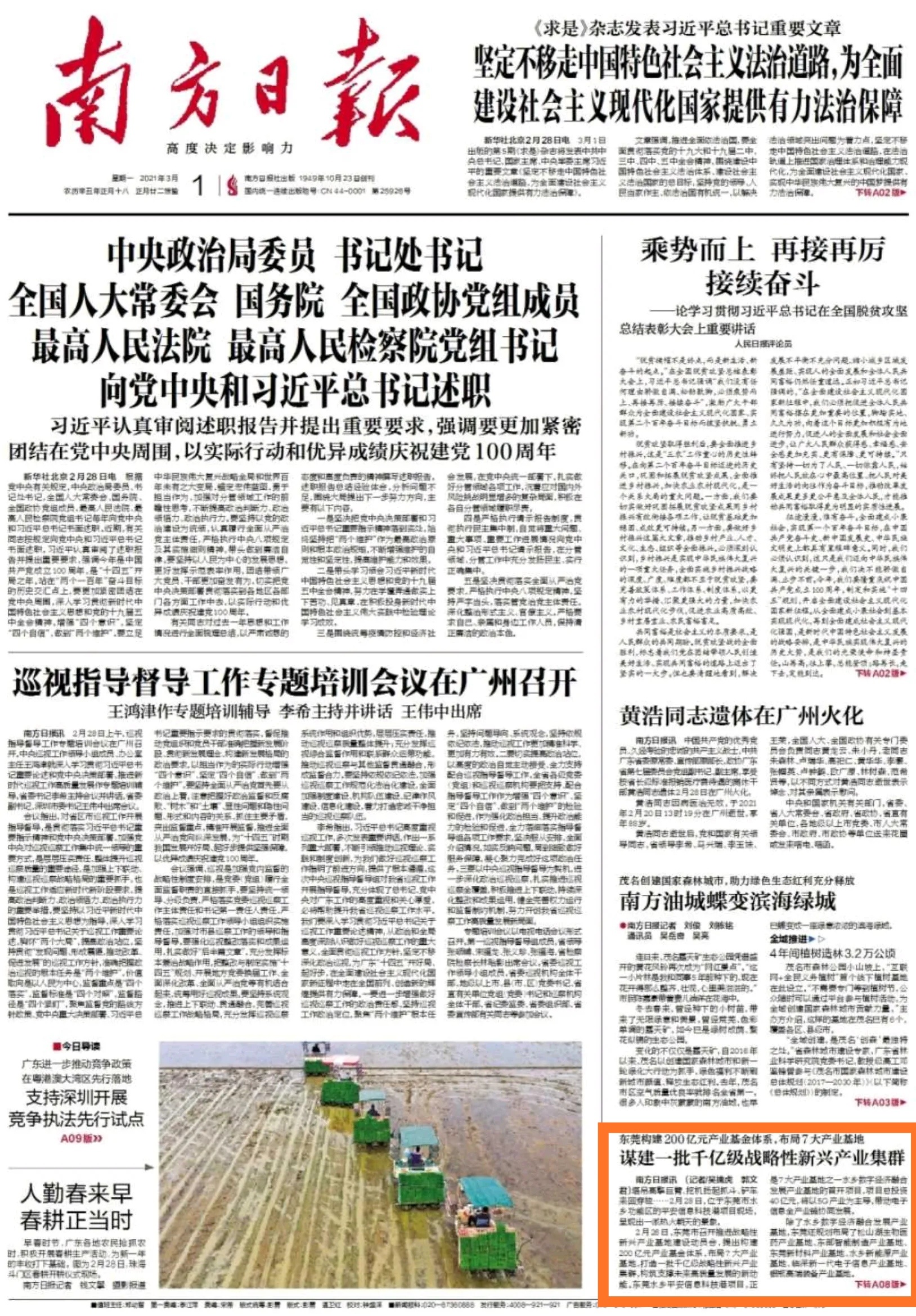 2月26日,东莞市召开推进战略性新兴产业基地建设动员会,提出构建200亿元产业基金体系,布局7大产业基地,打造一批千亿级战略性新兴产业集群,构筑支撑未来高质量发展的新动能。东莞水乡平安信息科技港项目,正是7大产业基地之一水乡数字经济融合发展产业基地的首开项目,项目总投资40亿元,将以5G产业为主导,带动电子信息全产业链协同发展。