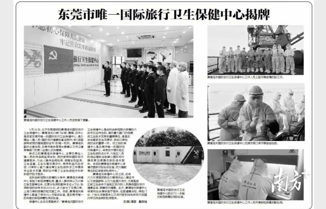 3月25日,位于东莞南城的黄埔海关国际旅行卫生保健中心(黄埔海关口岸门诊部)揭牌,该中心是目前东莞市唯一的国际旅行卫生保健中心,是办理出入境人员《国际旅行健康检查证明书》和《疫苗接种或预防措施国际证书》的唯一机构。黄埔海关副关长谢玉茹,东莞市商务局局长蔡康以及市卫健局等部门负责人出席仪式并揭牌。