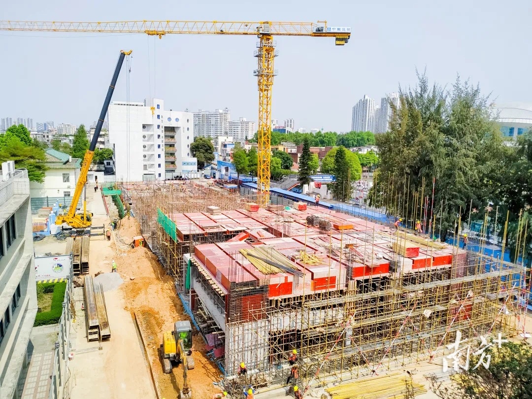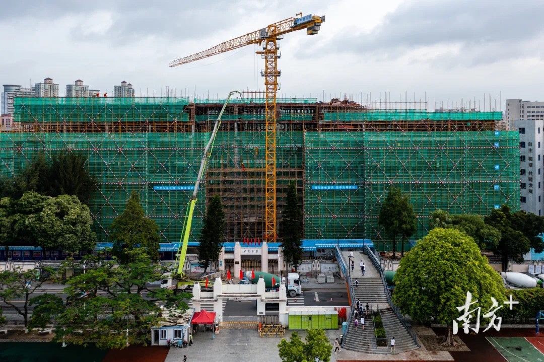东莞市城建工程管理局工程二科项目组组长张泰华介绍,5月31日,该项目完成了主体结构封顶,计划于7月底完成室内电梯安装调试,8月上旬完成外架、施工电梯及塔吊拆除,力争于8月底完工并移交校方使用。