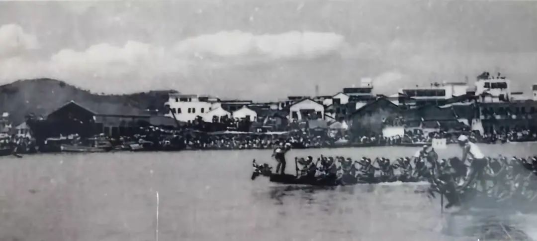 图为当年龙舟赛的场景