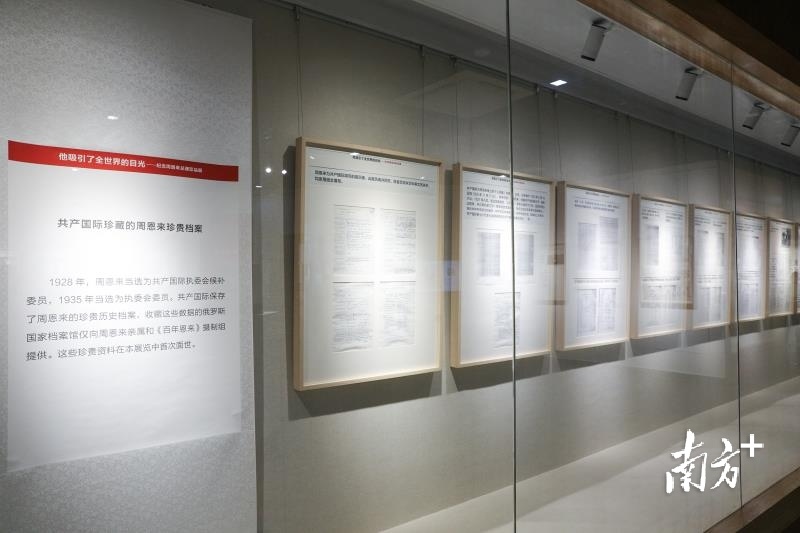展品中还有一批共产国际珍藏的周恩来珍贵档案。1928年,周恩来当选为共产国际执委会候补委员,1935年当选为执委会委员。共产国际保存了周恩来的珍贵历史档案,收藏档案的俄罗斯国家档案馆按规定仅向周恩来亲属和《百年恩来》摄制组提供。