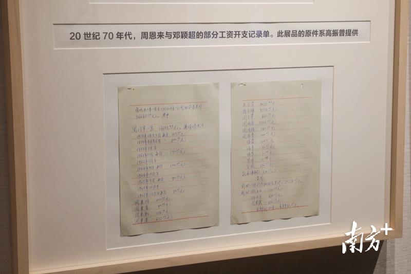 这是周恩来的警卫员高振普为展览提供的20世纪70年代周恩来和邓颖超的部分工资开支记录单。