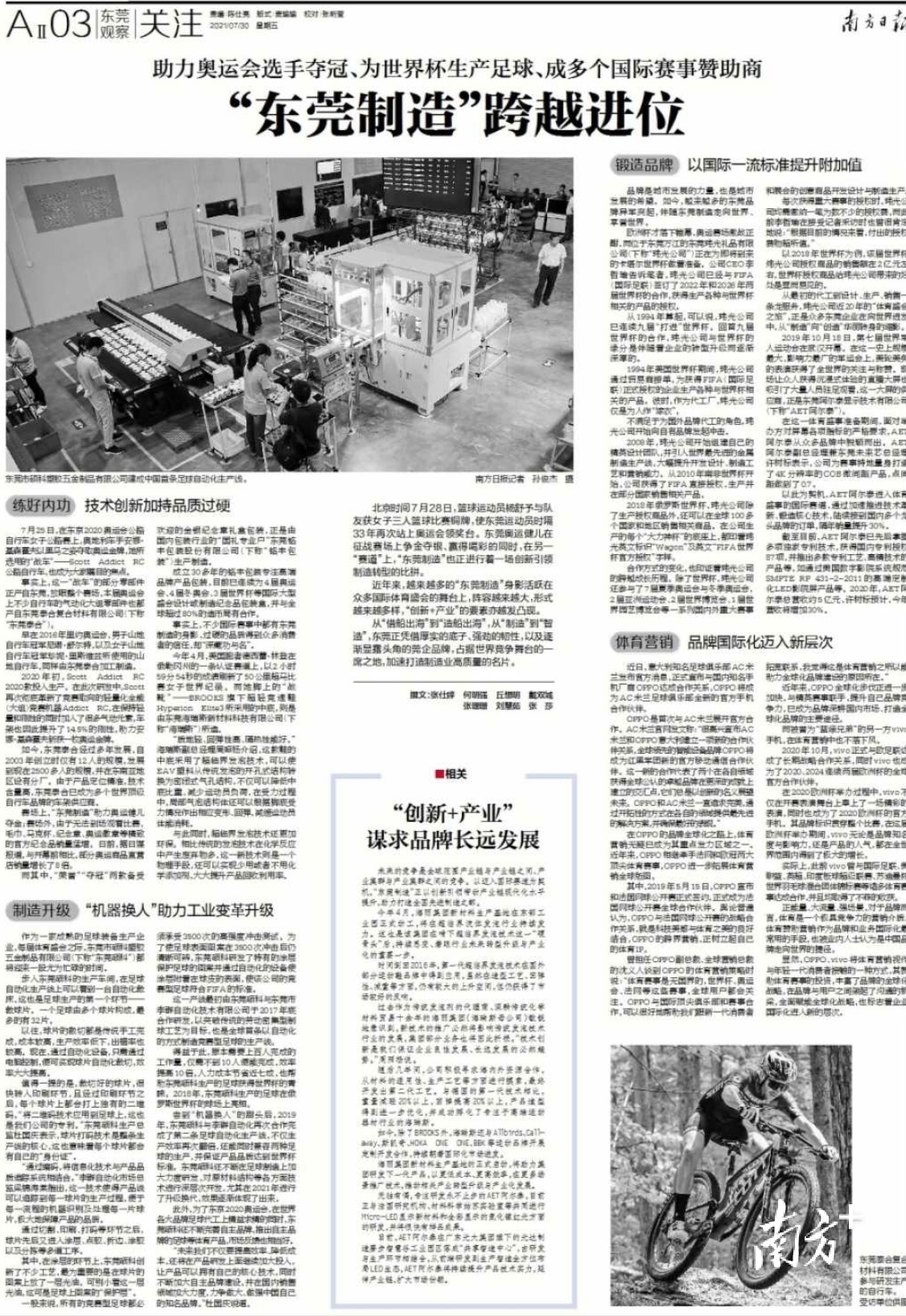 事实上,不少国际赛事中都有东莞制造的身影,过硬的品质得到众多消费者的信任,却“深藏功与名”。