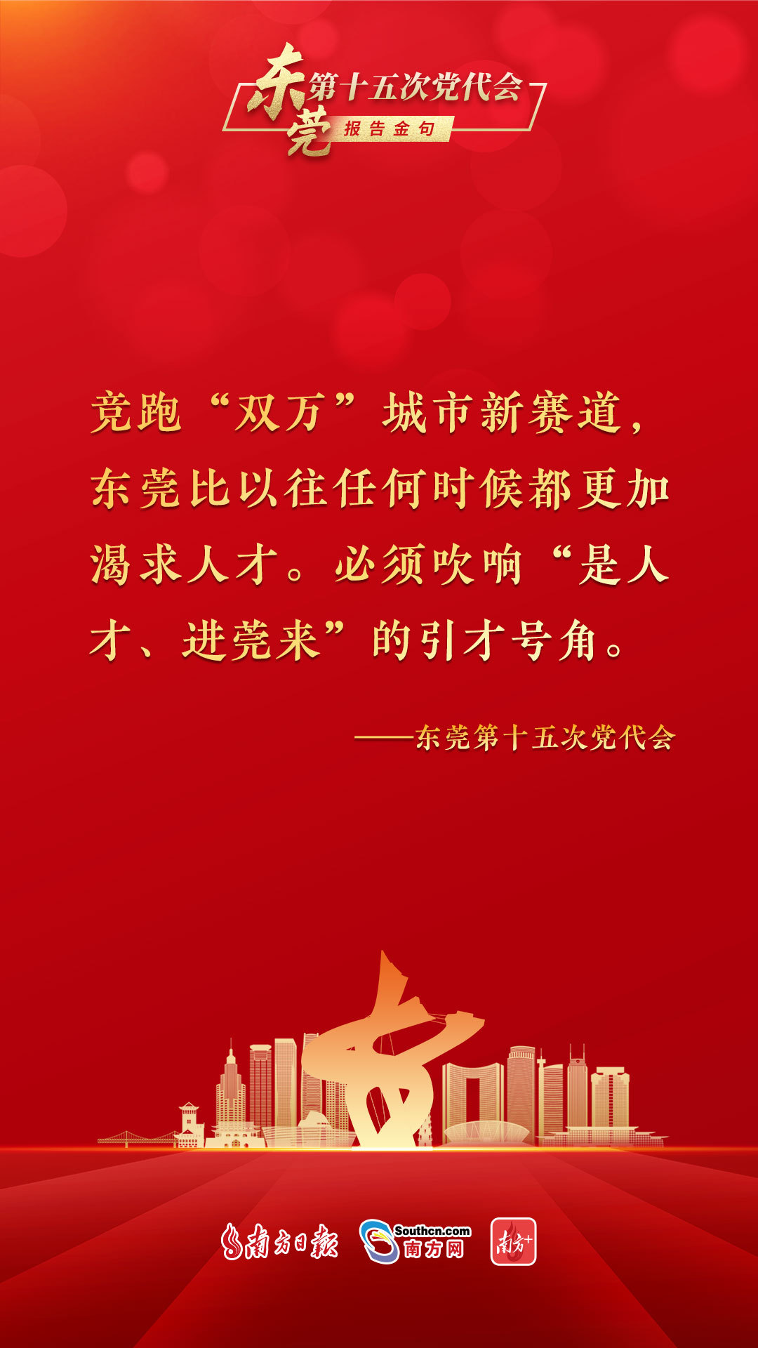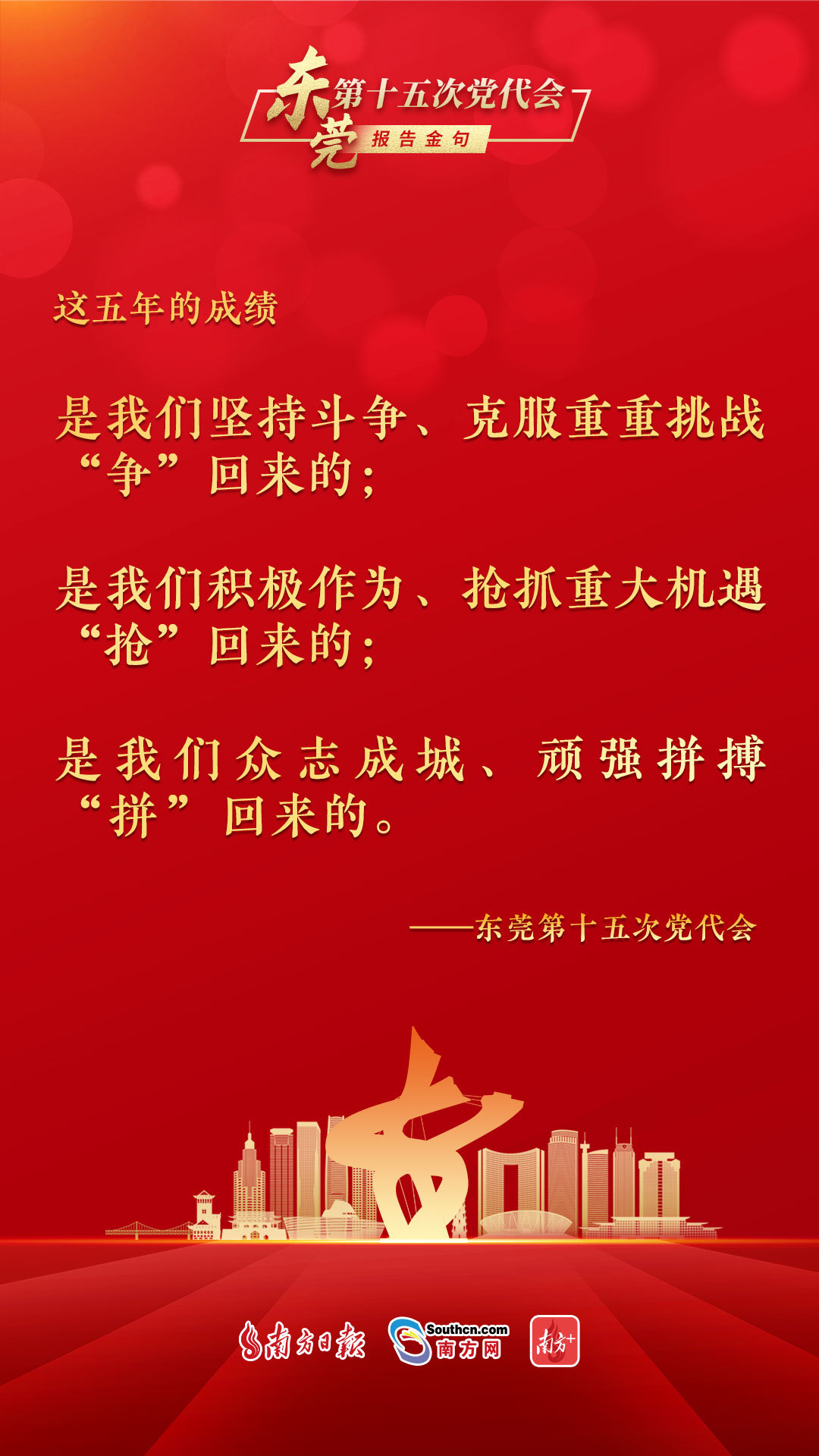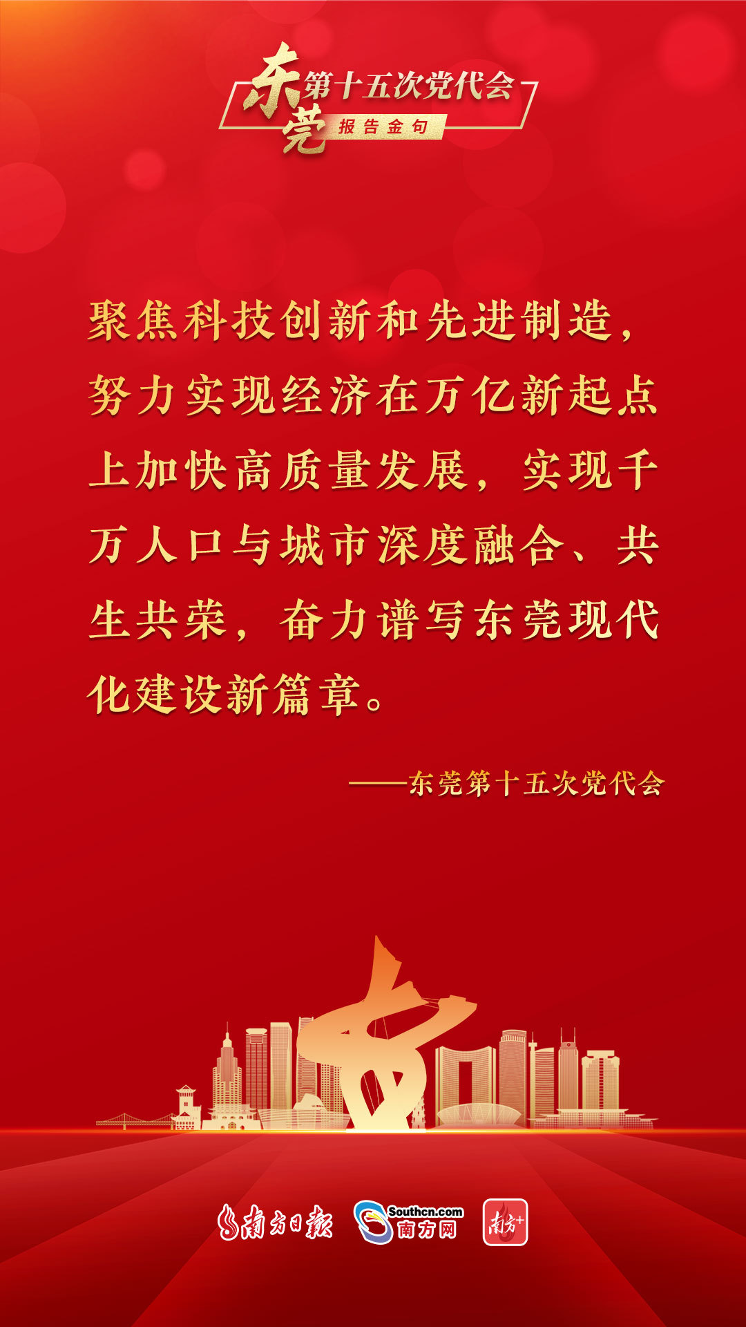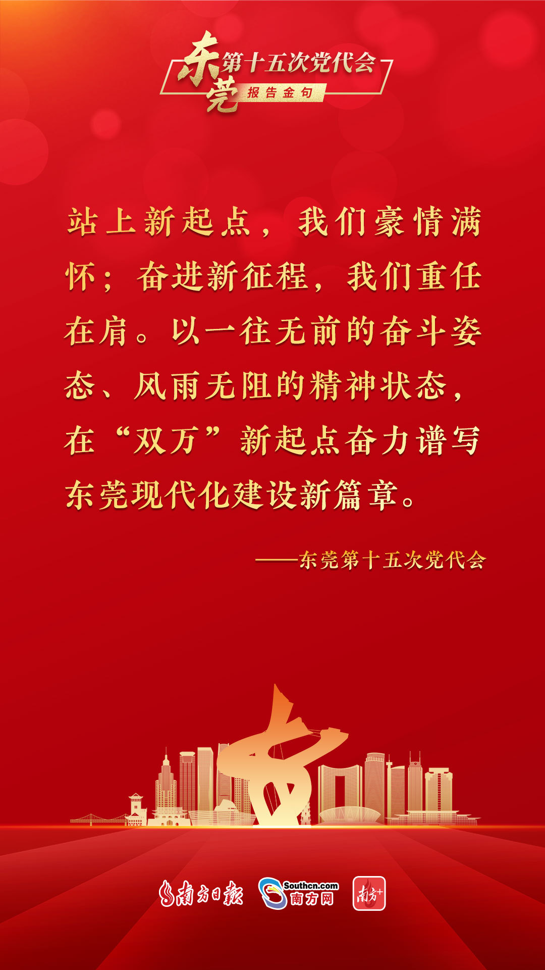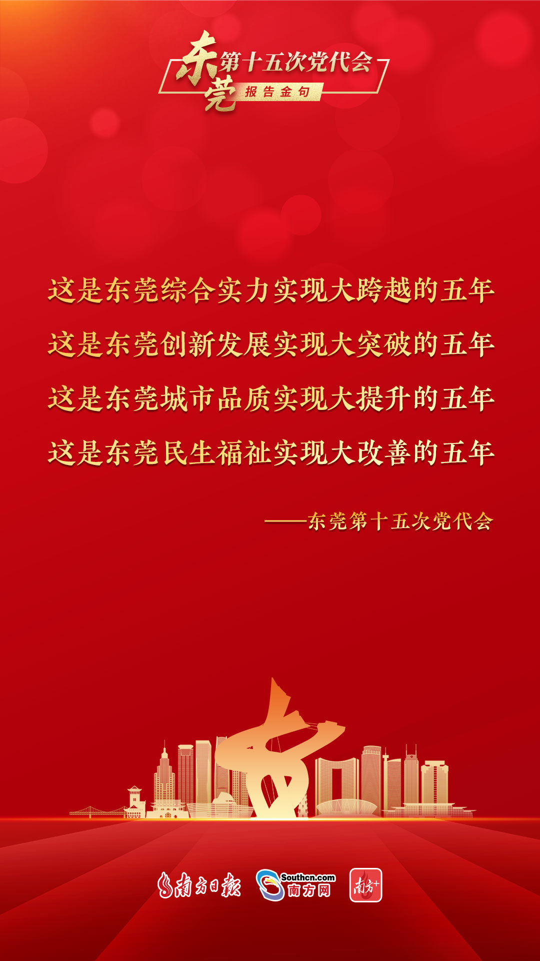 1月5日,中国共产党东莞市第十五次代表大会开幕。党代会报告金句频出、催人奋进。会议擘画了怎样的东莞未来? 南方+通过一组金句海报带你一起感受现场。
