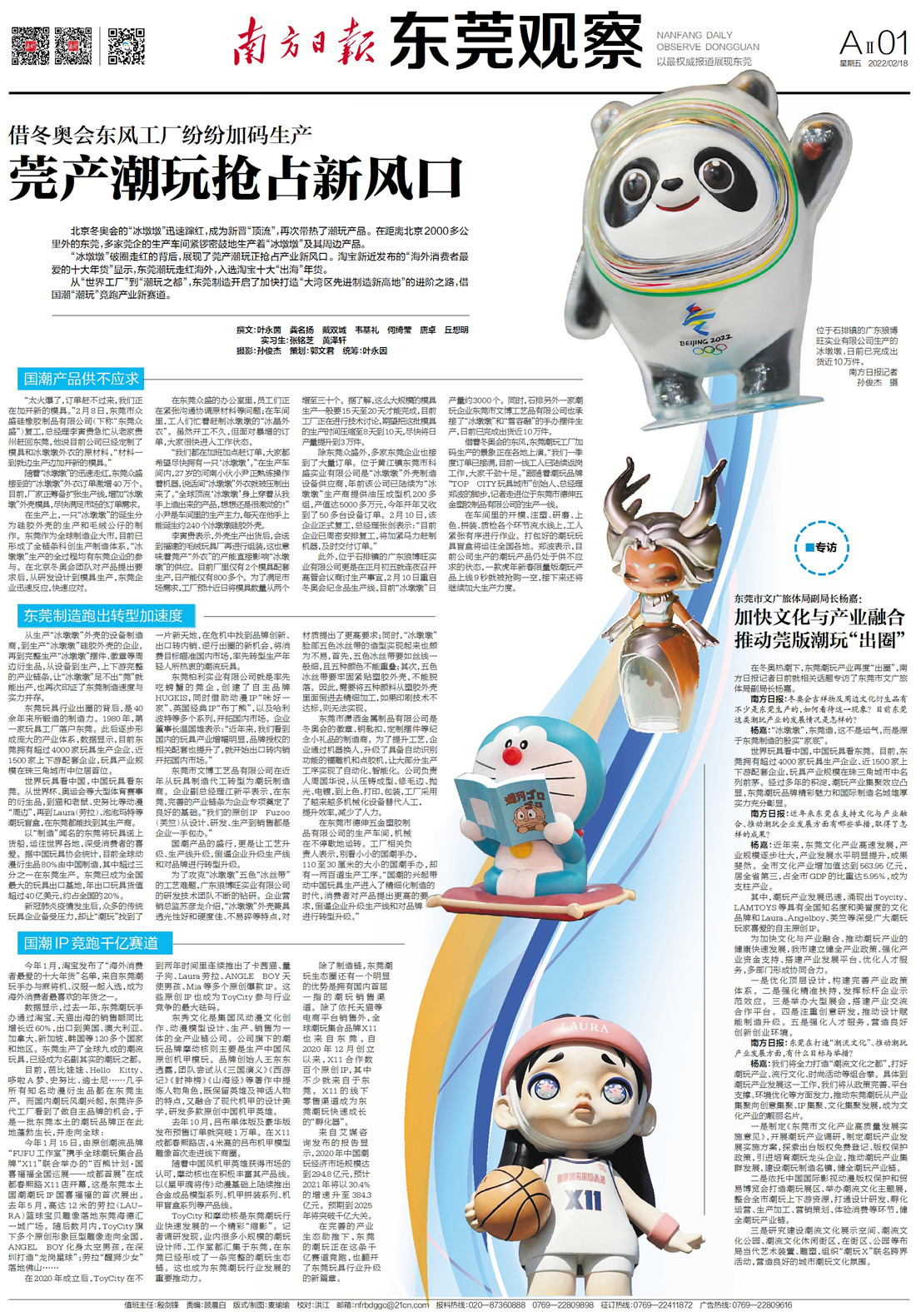 在冬奥热潮下,东莞潮玩产业再度“出圈”,南方日报记者日前就相关话题专访了东莞市文广旅体局副局长杨嘉。