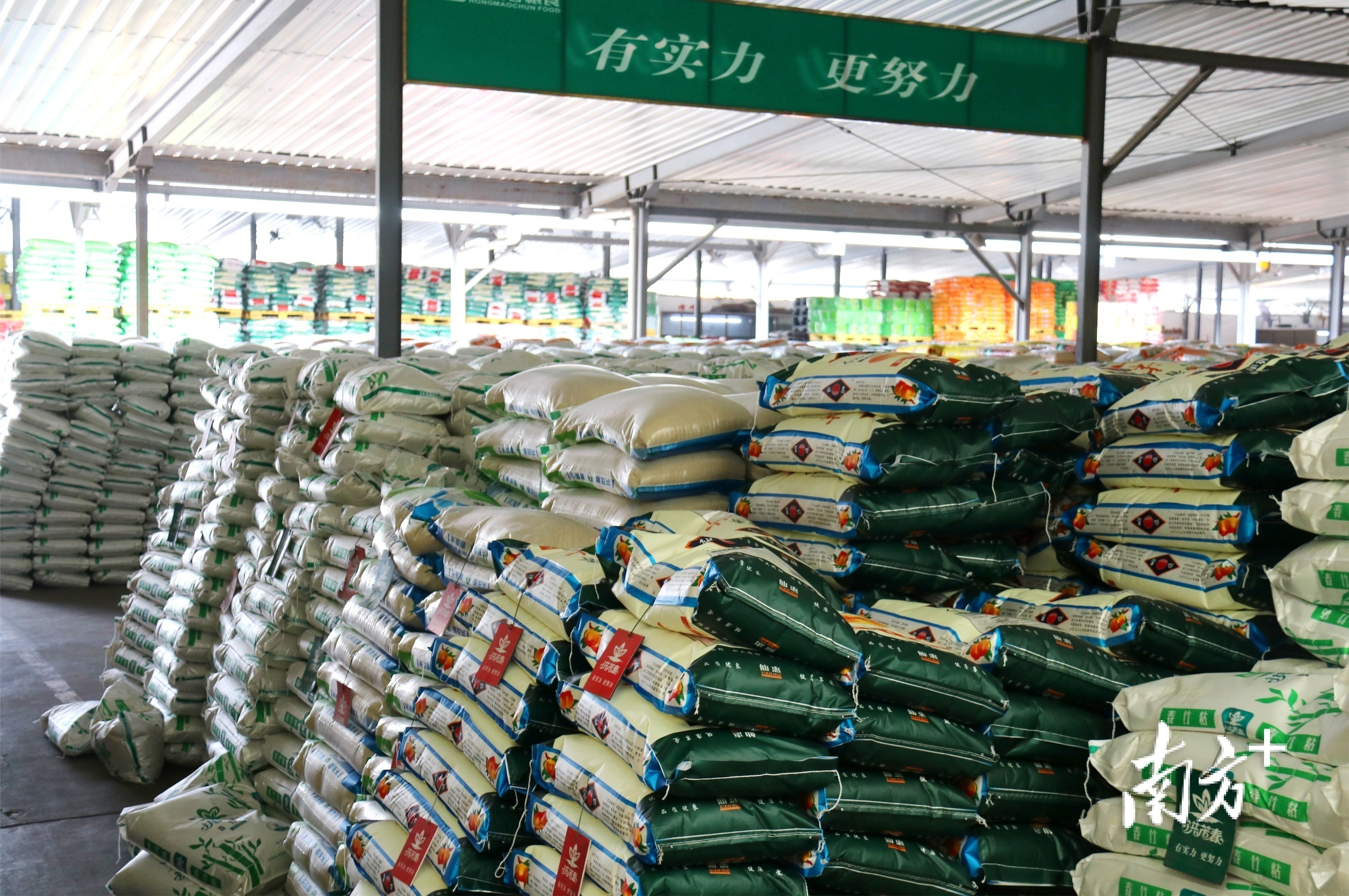 在东莞市常平粮油批发市场,各式各样的成品粮堆满了粮仓,多辆货车正忙着运输成品粮。“目前,海运、铁路、公路等货运渠道都十分畅通,货源充足。”市场有关负责人介绍,目前市场现有库存大米近2万吨,储备充足、价格平稳、流通有序,可满足常平居民的用粮需求。