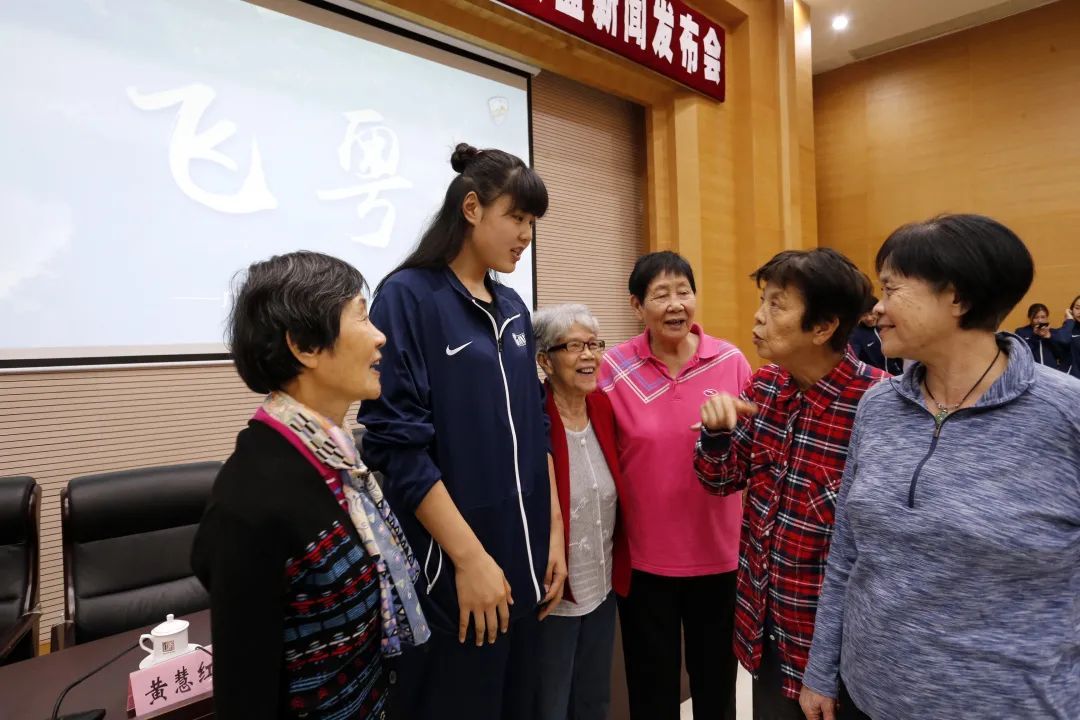 ▲资料图:2017-2018赛季前夕,李少芬(右二)等女篮前辈在大朗为李月汝加油鼓劲。(李少芬除了是前女篮队员、教练,还是钟南山院士的夫人)