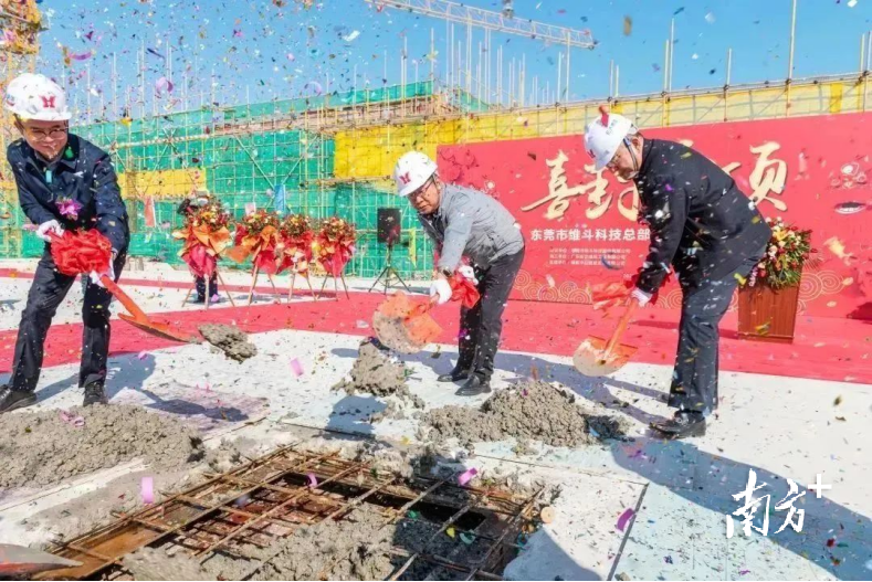 大步向前、满弓劲发,东莞市重大项目正护航经济高质量发展。前不久,东莞市维斗科技总部微型电机及自动光圈制造项目(下称“维斗项目”)封顶仪式现场,维斗科技集团与承建方共执红锨,为大楼浇筑最后一罐混凝土,标志着维斗项目主体工程顺利封顶。随着该重大项目的落成,维斗科技将进驻松湖智谷产业园区,推动集团业务全面升级和发展。待2023年9月项目投入使用,维斗项目还将实现年产值12亿元的目标。