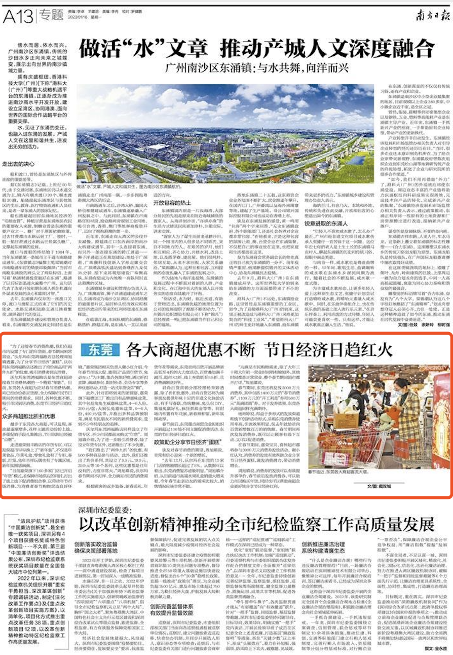 春节期间,东莞还将发放3000万元消费券,其中包括1400万元的“春节消费券”、1100万元的“开工利是”券和500万元“美满团圆”券。对于发券效果,东莞各大商超同样充满期待。