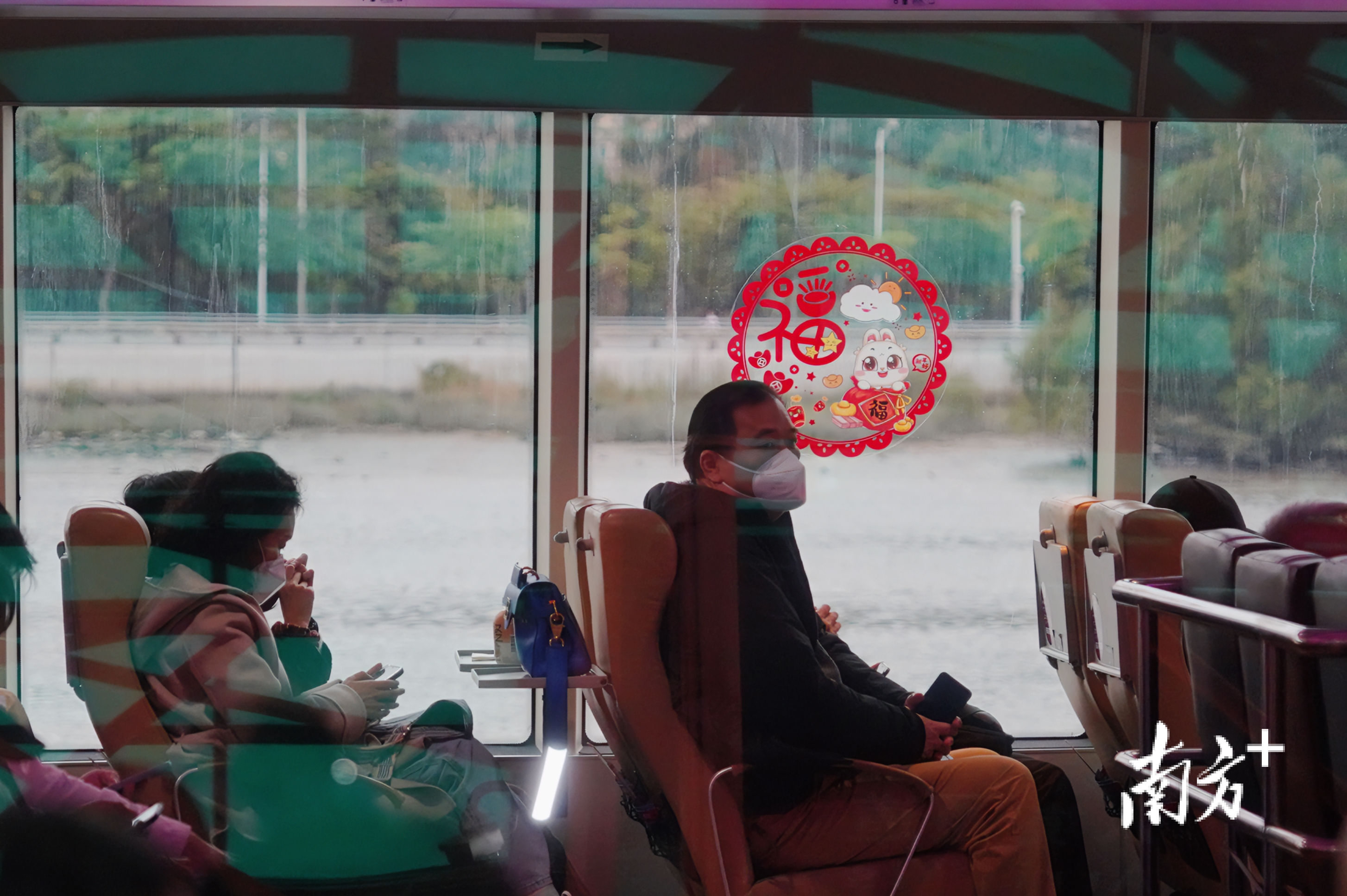 “新年快乐!”在验票、通关环节,工作人员为旅客送上祝福。客轮的玻璃窗上贴有红色窗花,让这趟船班更添年味。“很高兴,很激动!”在虎门工作的台商张先生带着满满的年货,准备回家过年。三年没回家的他,这次准备了充足的时间探亲访友。