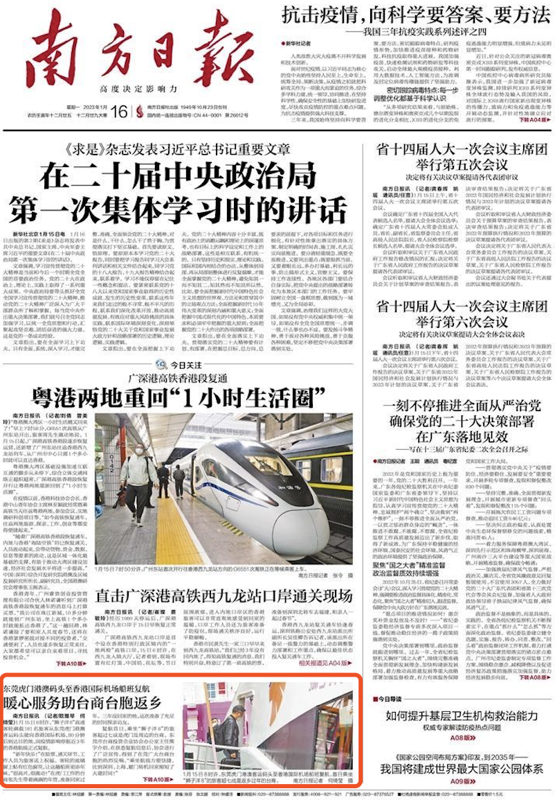 1月15日8时许,“狮子洋8”高速客轮满载181名旅客从东莞虎门港澳客运码头驶向香港国际机场,80分钟后到达目的地,因疫情影响停航近3年的香港航线正式复航。
