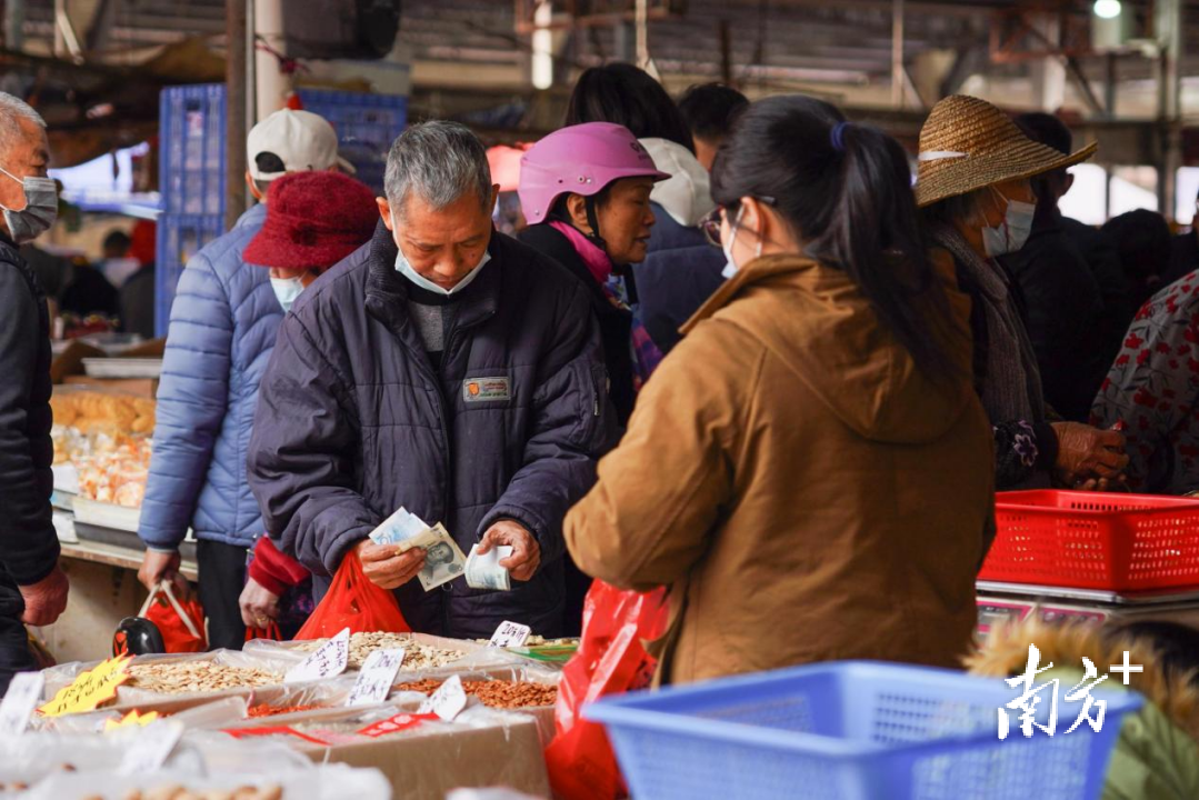 在春节期间迈入振华路和细村市场,立刻就能体验到莞邑大地上最传统的年味儿。来到这些传统市集的消费者以中老年市民为主,他们多数与家人同行,也有许多选择与“老姐妹”“老兄弟”结伴进行新年大采购。