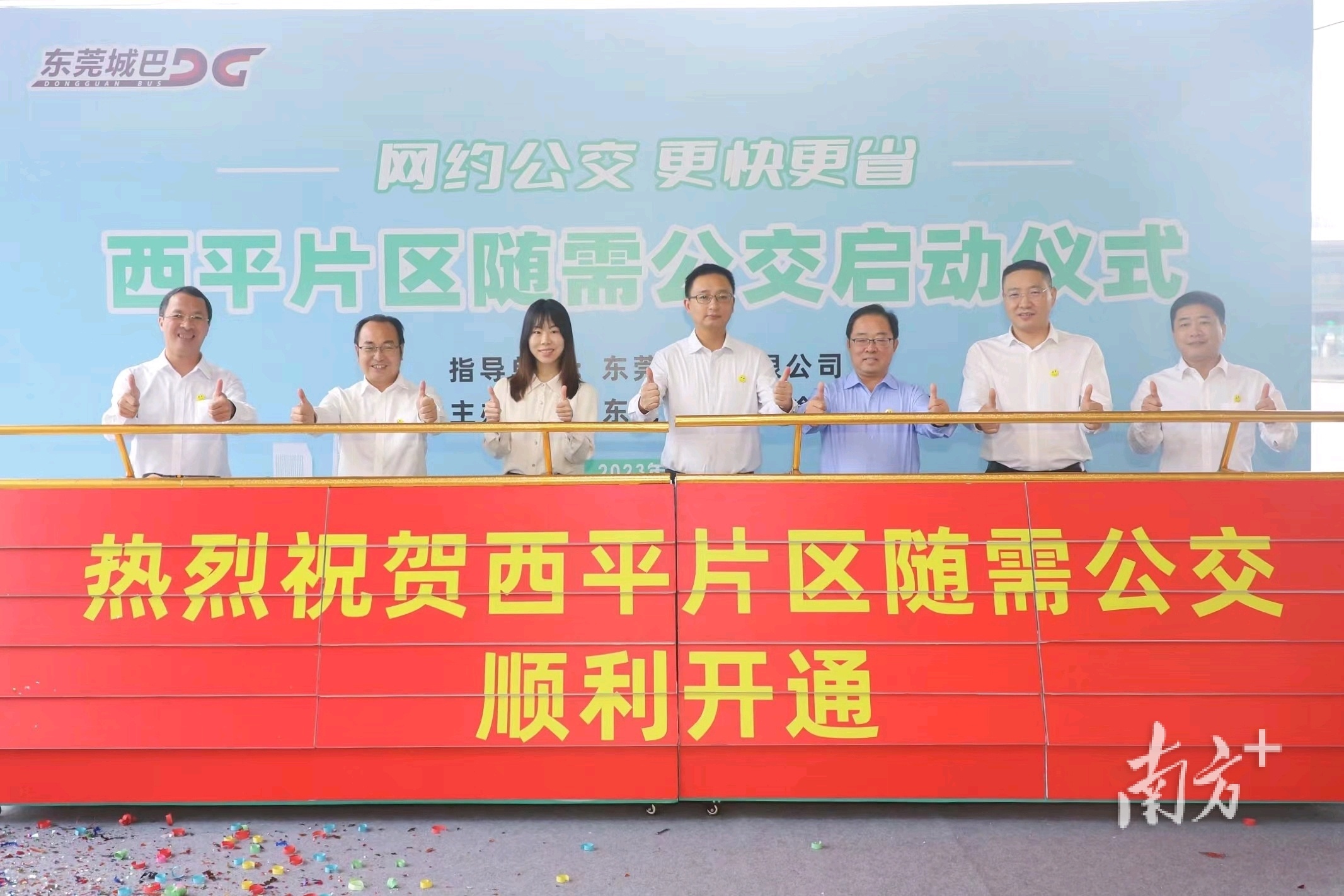 仪式上,东莞巴士公司党委书记、董事长黎俊锋宣布西平片区随需公交正式开通,领导嘉宾上台共同推杆启动。