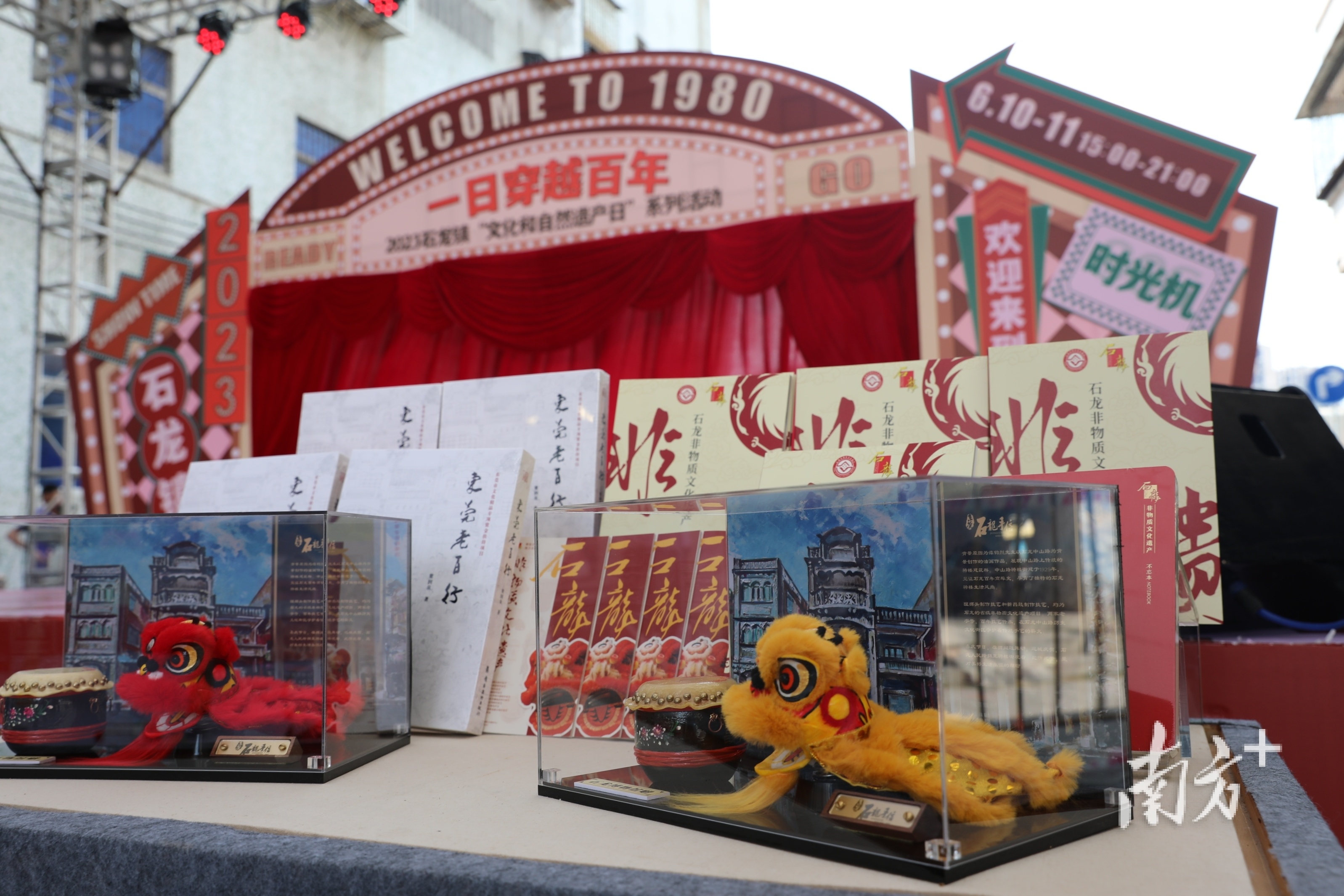 活动现场还为非遗内刊及宣传折页、非遗手信、非遗笔记本等非遗文创产品进行首发。其中,非遗手信以中山路骑楼街为背景,以石龙两项省级非遗项目——德和兴醒狮头和新昌鼓为主角,狮鼓联手组成一份独具石龙文化印记的手信。非遗笔记本以“不忘本”为名,希望使用者在记录之余,翻看石龙非遗项目背后的故事,对传统文化寻根“不忘本”。非遗内刊及宣传折页,则悉心记录了石龙镇非遗历史、传承、发展和保护情况,是石龙非遗研究、教育和传承的重要依据,是石龙发展“历史文化”“莞邑文化”和“潮流文化”的重要载体。